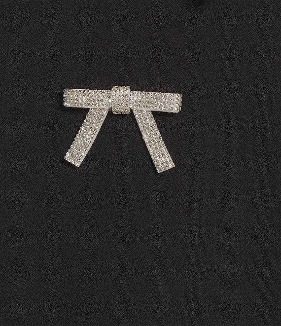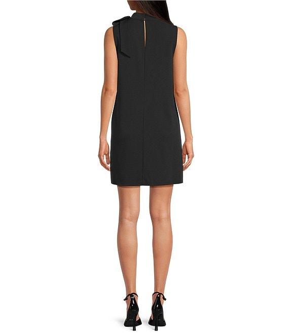 From Sugarlips, this dress features: Rhinestone bow accents Mock neckline Neck bow detail Sleeveless Invisible side zipper closure A-line silhouette Back keyhole detail Side seam pockets Lined Mini length Approx. 34.5" length Self: polyester Lining: polyester/spandex Dry clean Imported.