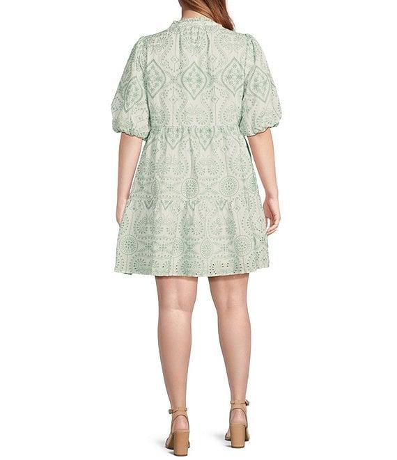 Sugarlips Plus Evelyn Jacey Floral/Paisley Eyelet Embroidered Puffed Sleeve Shift Dress