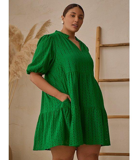 Sugarlips Plus Eyelet Solid Babydoll Shift Mini Dress
