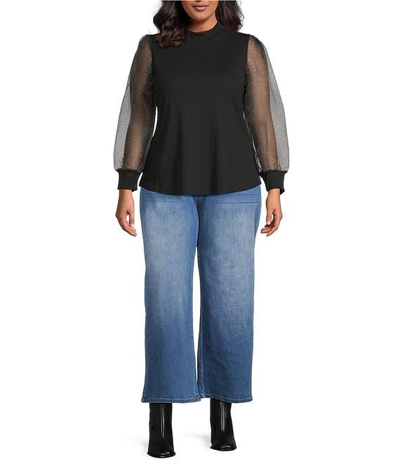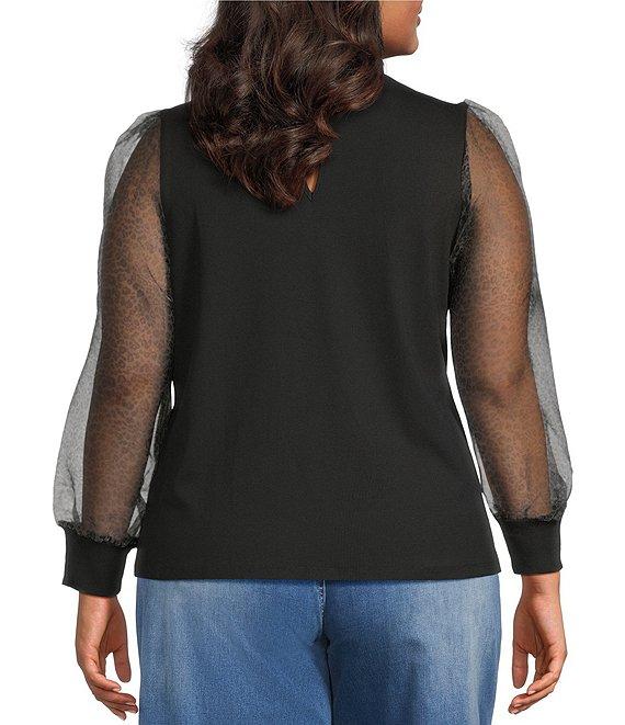 Sugarlips Plus Knit Long Sheer Leopard Sleeve Top