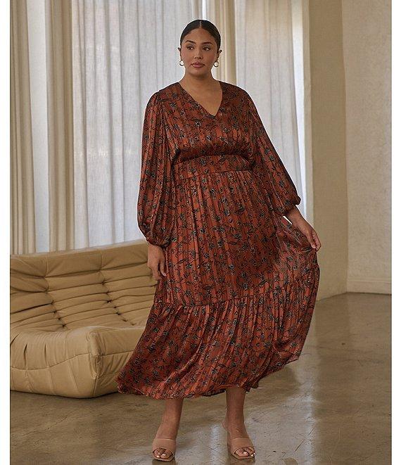 Sugarlips Plus Leoben Floral Balloon Sleeve Long Dress