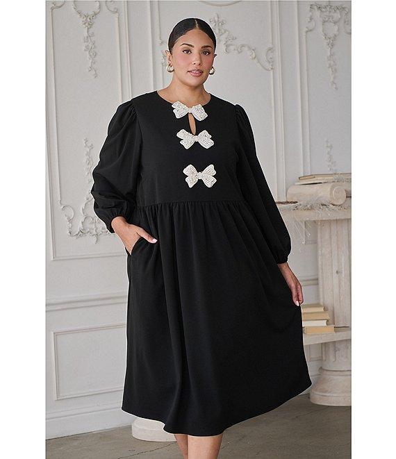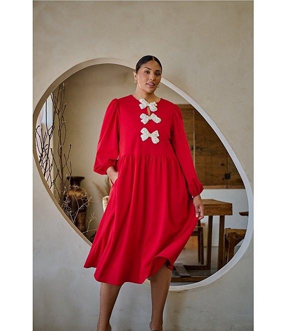 Sugarlips Plus Pearl Jena Glow Bow Round Neck Long Sleeve Velvet Midi Dress