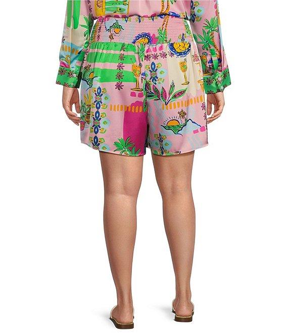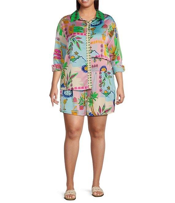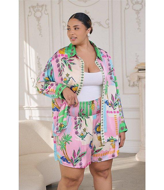 Sugarlips Plus Retro Novelty Printed Coordinating High Waisted Satin Shorts