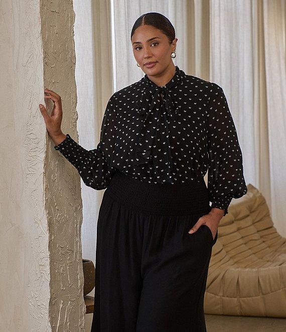 Sugarlips Plus Size Etienne Bow Printed Balloon Sleeve Blouse