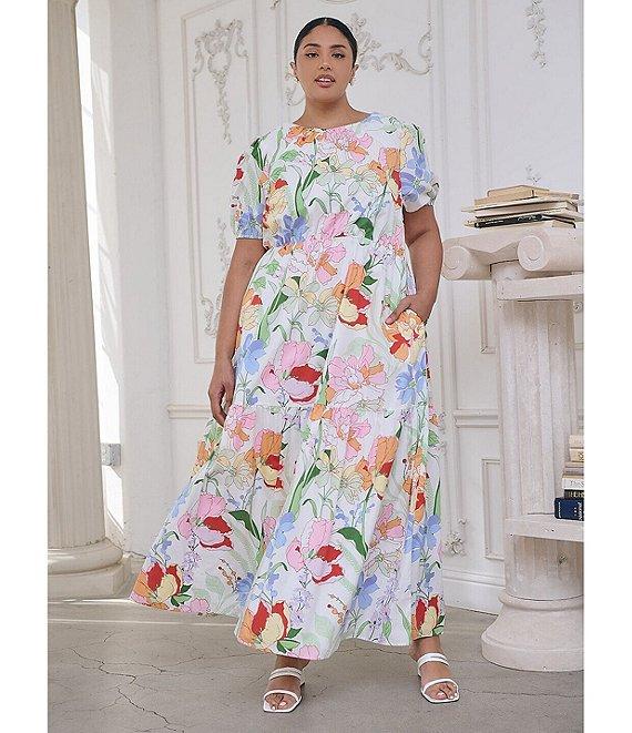 Sugarlips Plus Size Juliet Floral Garden Becca Short Sleeve Long Tiered Dress
