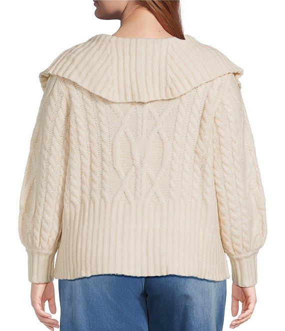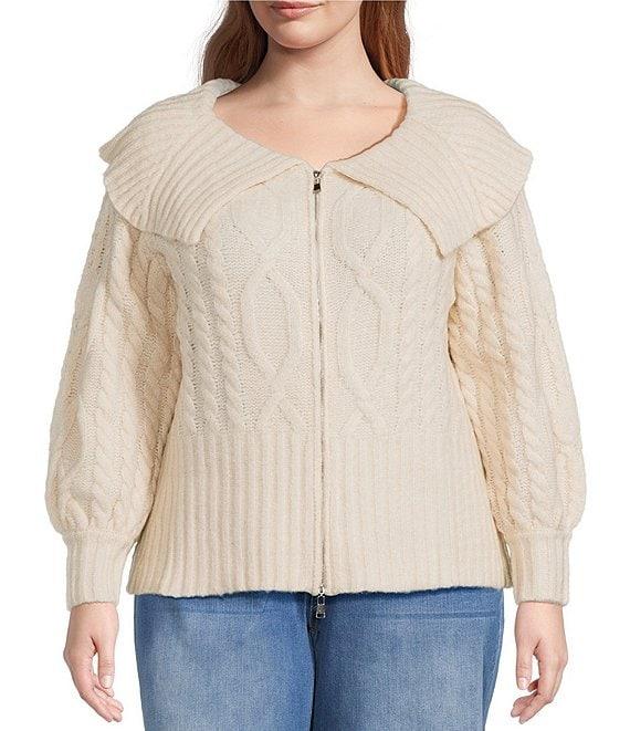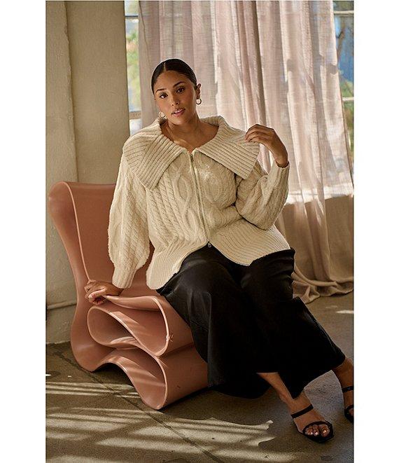 Sugarlips Plus Size Mitchell Cable Knit Rib Collar Long Sleeve Drop Shoulder Zip Up Cropped Sweater