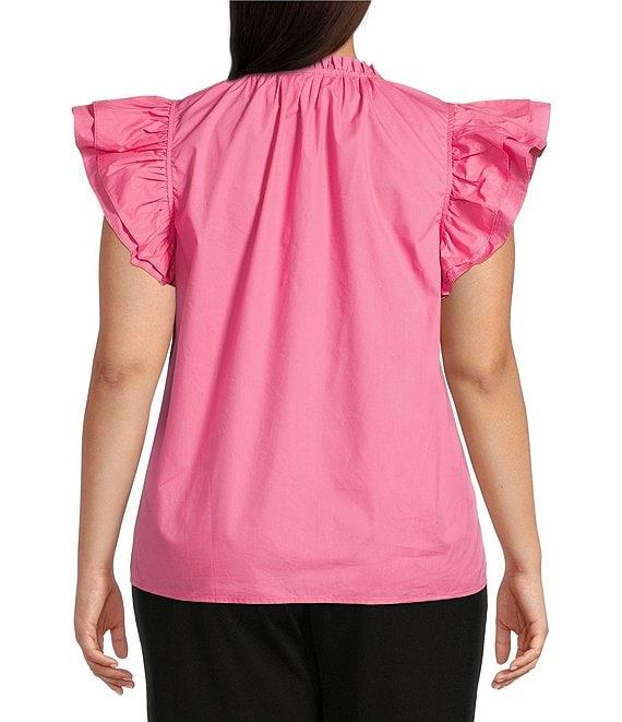 Sugarlips Plus Size Ruffle-Sleeve Woven Poplin Blouse