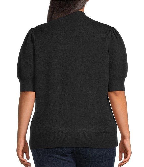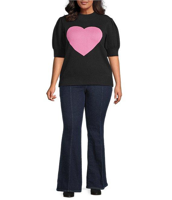 Sugarlips Plus Size Russel Heart Mock Neck Short Puff Sleeve Sweater