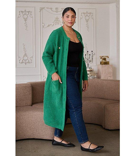Sugarlips Plus Size Sanford Crew Neck Long Sleeve Button Down Sweater Knit Midi Cardigan