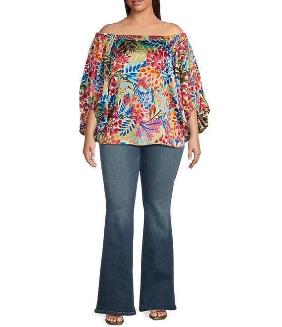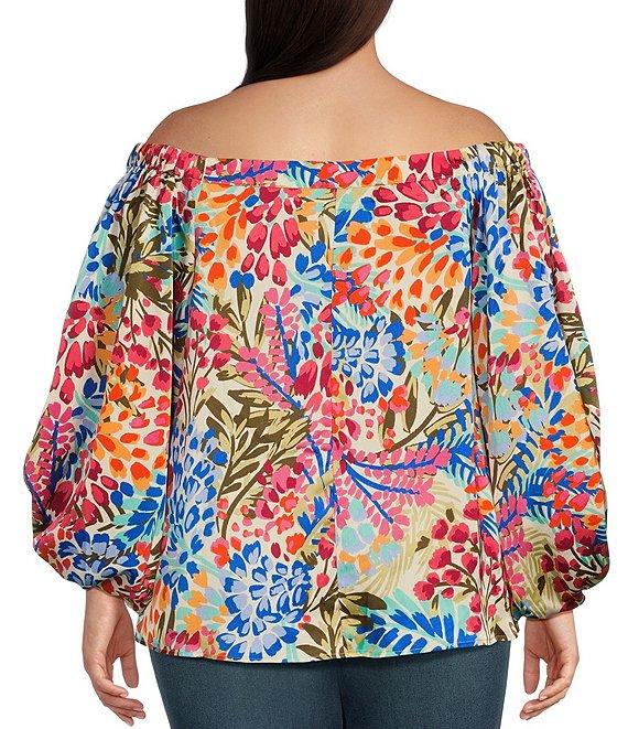 Sugarlips Plus Size Tropical Abstract Printed Off-The-Shoulder Balloon Sleeve Coordinating Top
