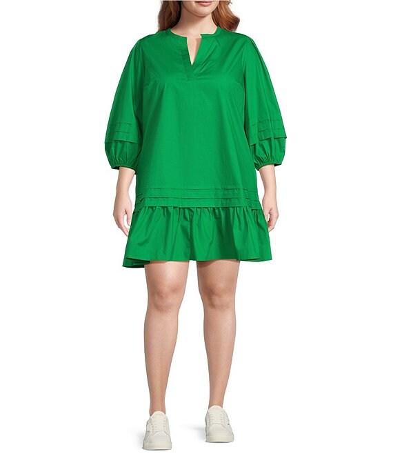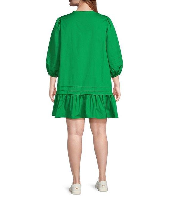 Sugarlips Plus Velma Long Sleeve Ruffled Poplin Shift Dress
