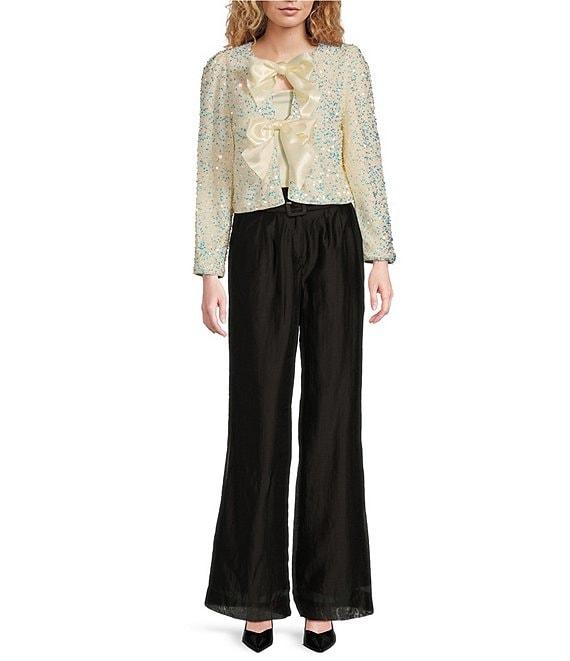 Sugarlips Sequin Crew Neck Long Sleeve Satin Bow Tie Cropped Jacket