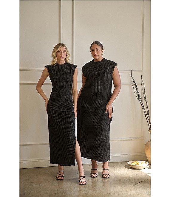 Sugarlips True Clover Bubble Mock Neck Sleeveless Bodycon Midi Dress