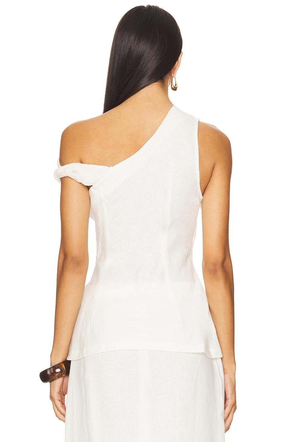 100% linen. Hand wash. Hidden side zip closure. One shoulder styling. Lightweight linen fabric. Item not sold as a set. Garment is made with a semi-sheer fabric, undergarments can show through. Made in Indonesia. Revolve Style No. FAIB-WS346. Manufacturer Style No. FF3955-WHT.