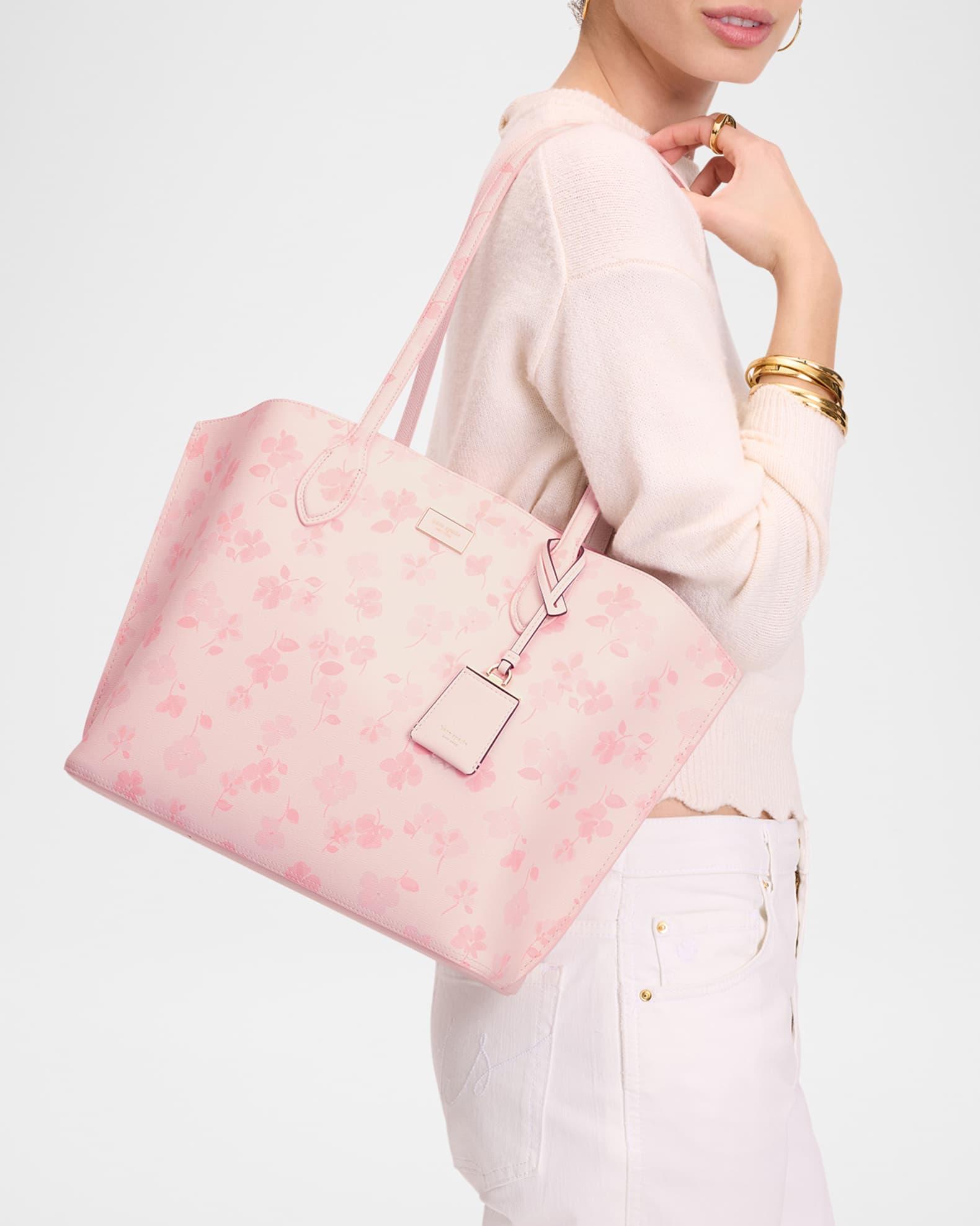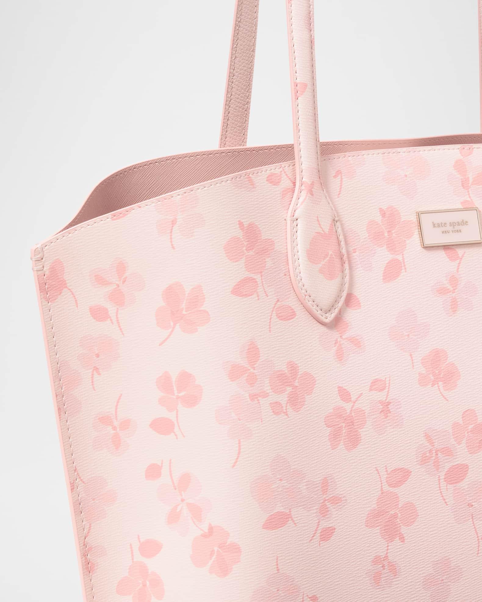 kate spade new york "Suite" tote bag in spring pansies leather and fabric Shoulder straps with tag, 10.9" drop Open top with magnetic closure Interior, one zip pocket Lining: Leather Approx. 11.4"H x 15.3"W x 4.7"D PVS Item Weight (Lbs.): 1.0 Spot clean Imported