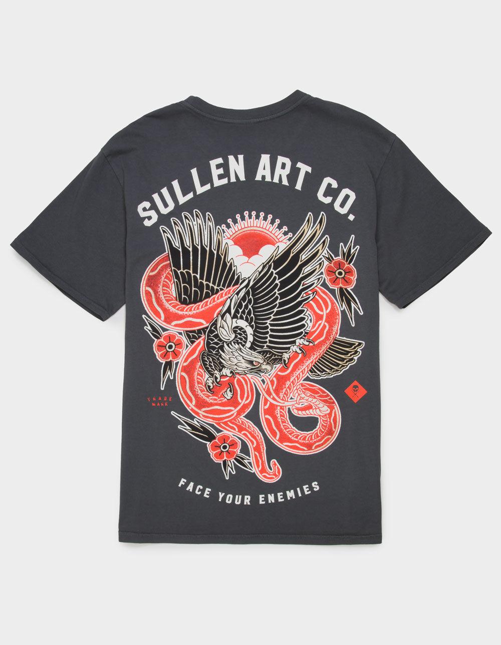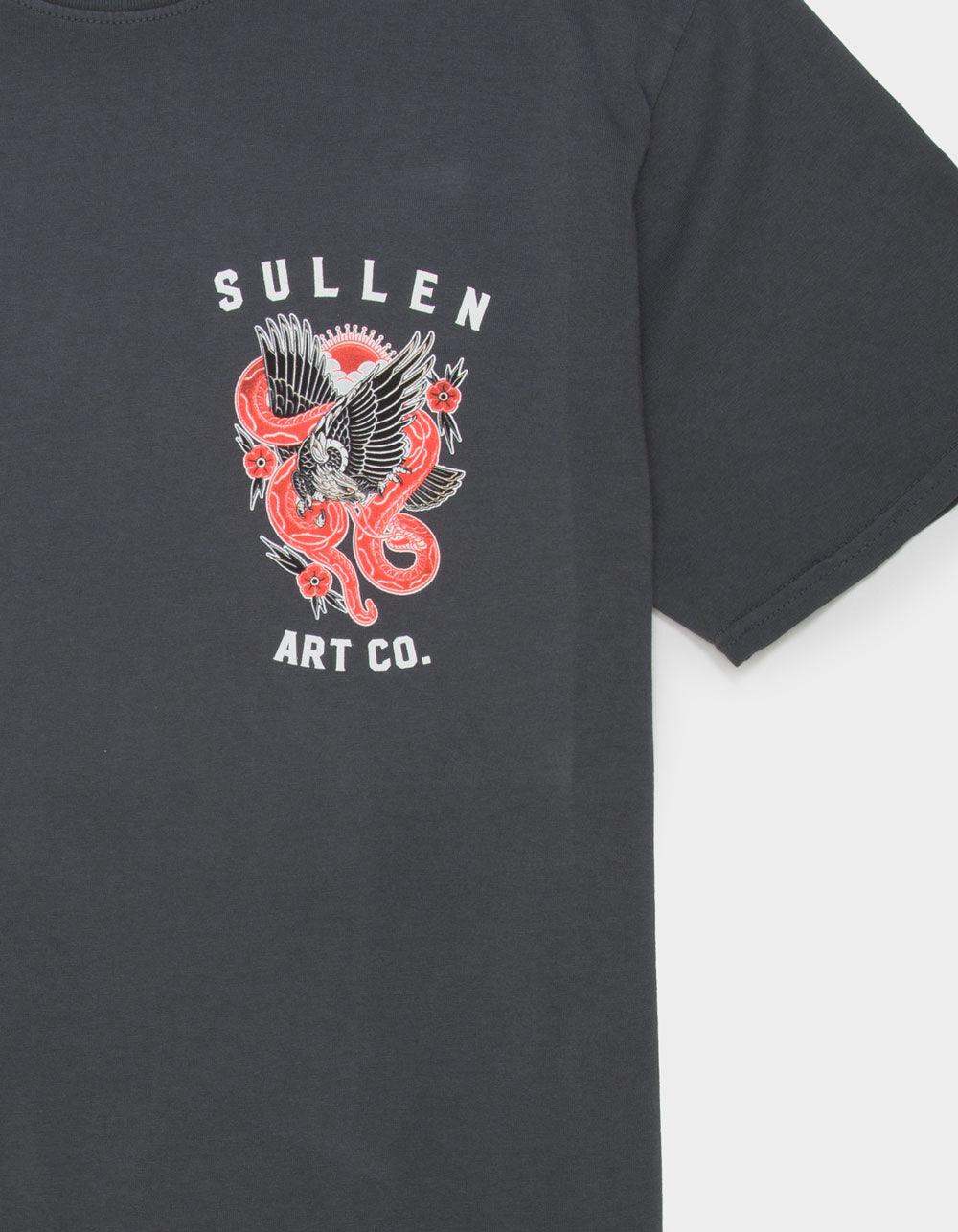 Sullen Battle Tee. Graphic screened at left chest. Large graphic on back. Woven label at left sleeve. Crew neck. Short sleeve. 100% Cotton. Machine wash. Imported.