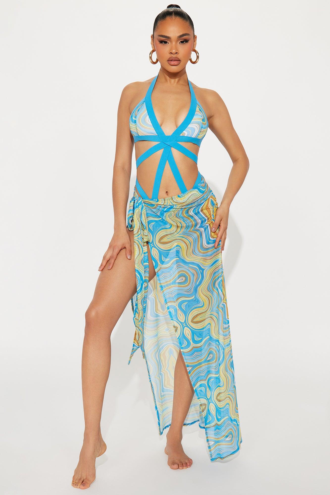 Available In Blue/combo. 1 Piece Swimsuit Set Contrast Bandage Trim Strappy, Triangle Cups Cheeky Matching Cover Up Sarong , Side Tie Maxi Length, Side Slit Full Stretch Final Sale Disclaimer: Print Placement May Vary Self: 95% Polyester 5% Spandex Contrast: 95% Polyester 5% Spandex Lining: 95% Polyester 5% Spandex Imported California Proposition 65 WARNING: Cancer and Reproductive Harm - www.P65Warnings.ca.gov.