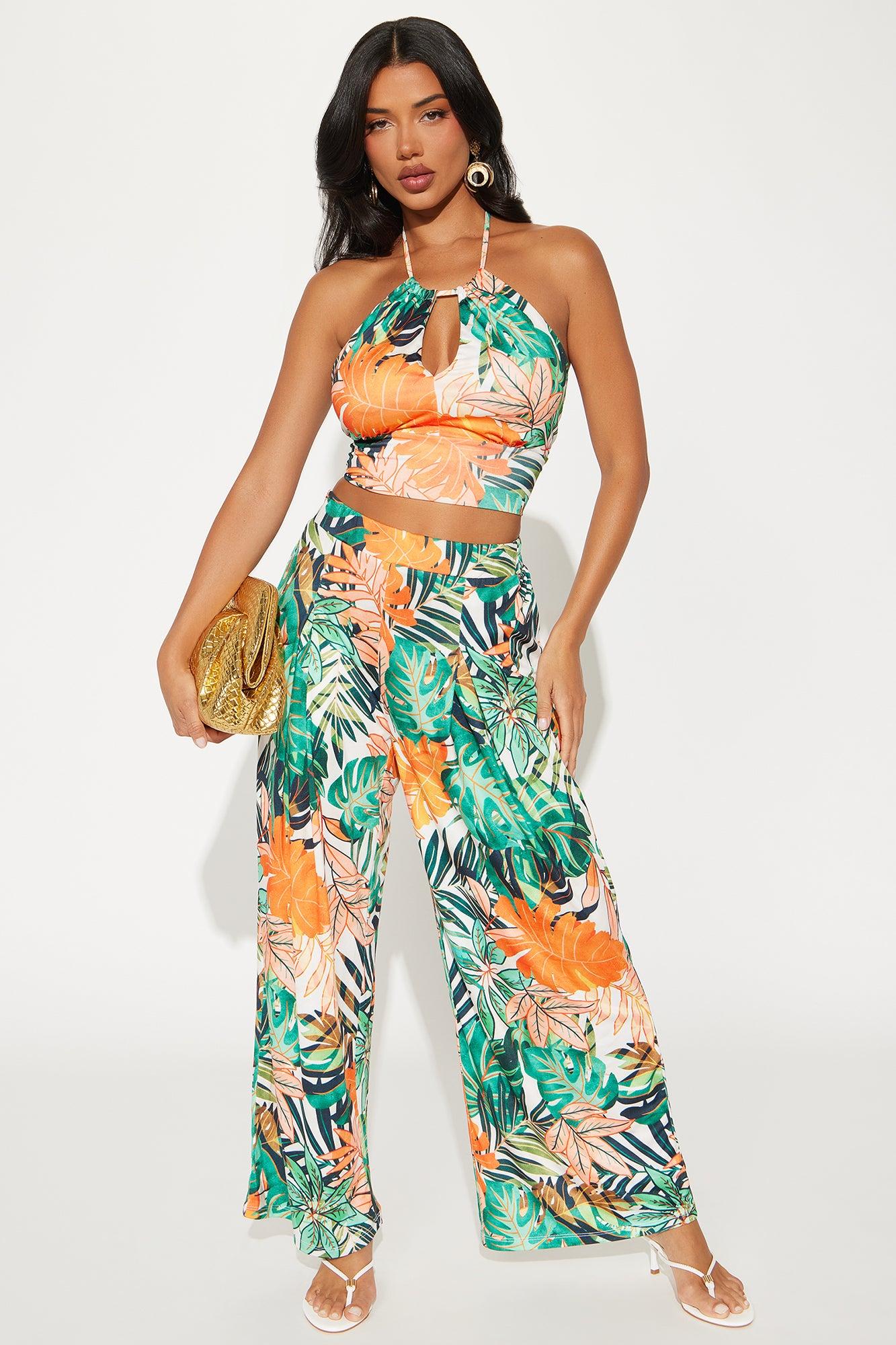 Summer Escape Wide Leg Pant Set - Orange/combo