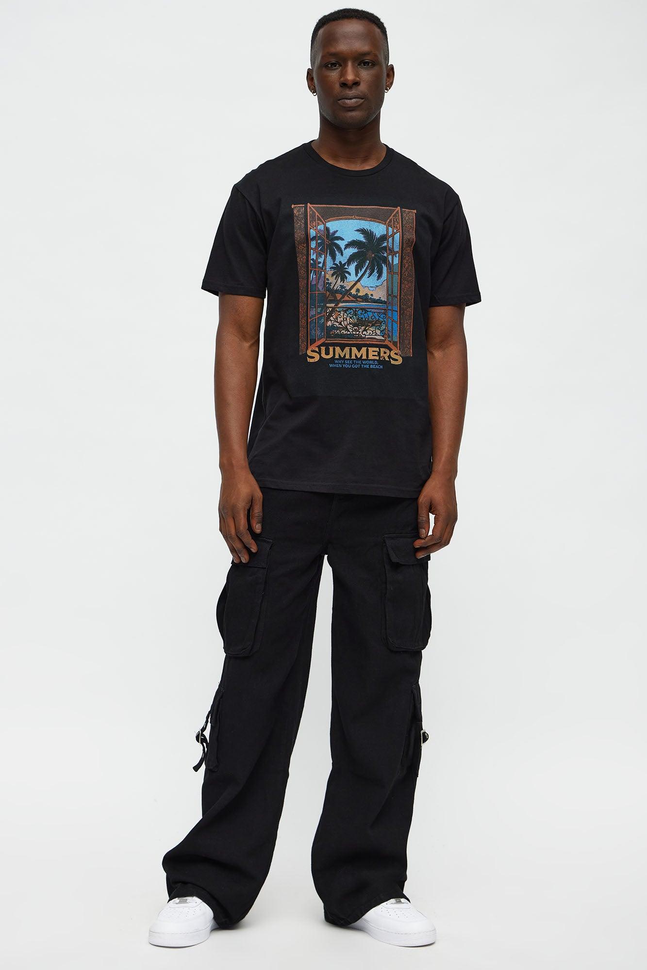 Summers Palm Trees Short Sleeve Tee - Black Male