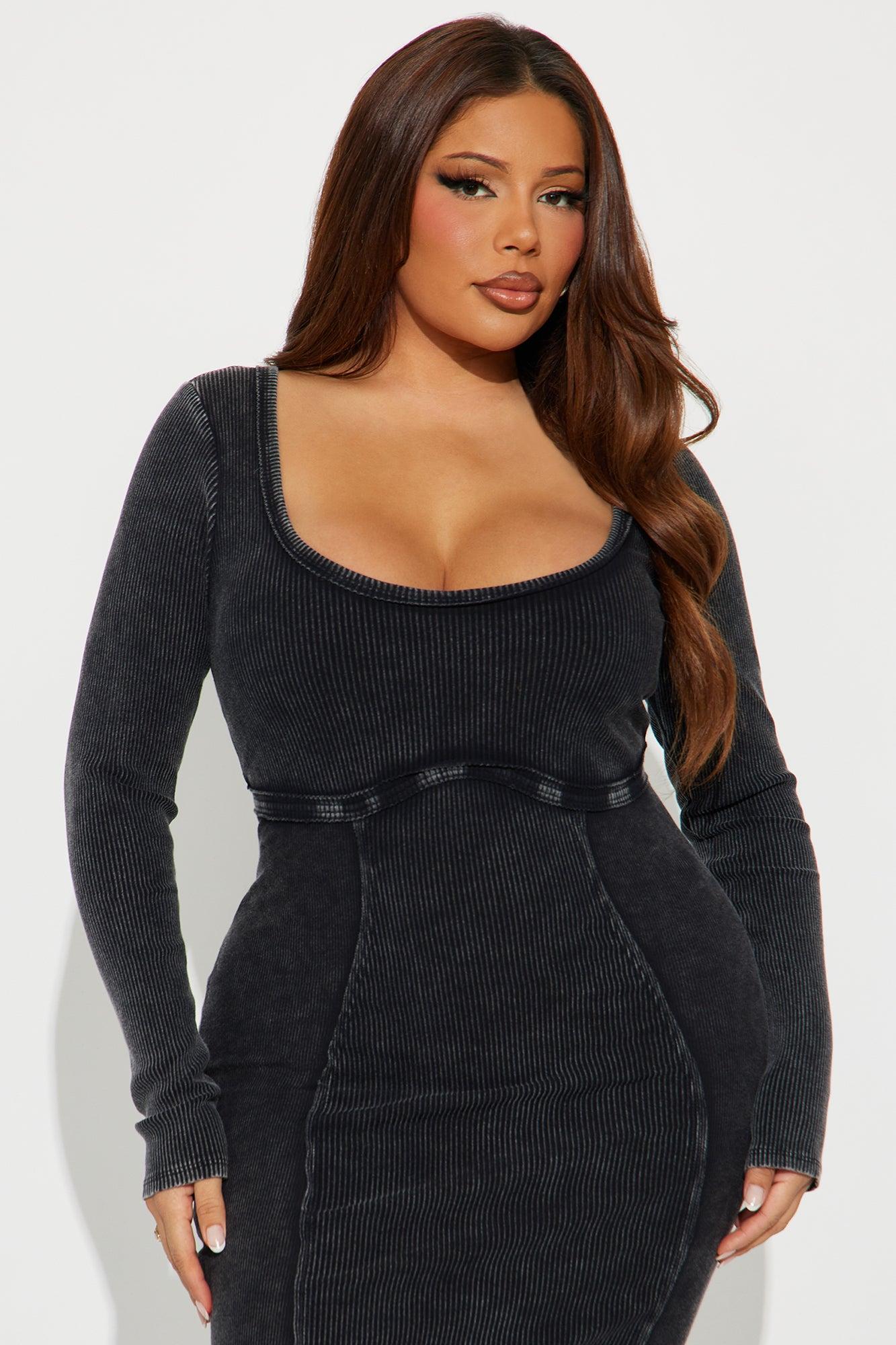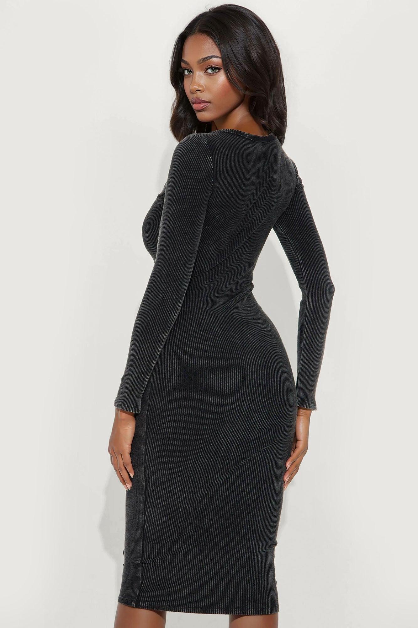 Sun Kiss Long Sleeve Mineral Wash Midi Dress - Black Female