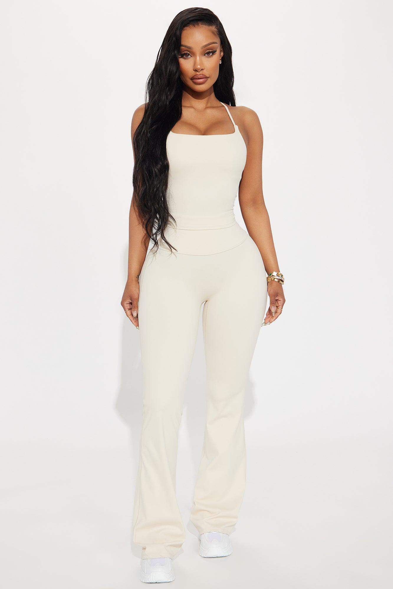 Available In Black And Cream. Active Top Spaghetti Straps Criss Cross Back Padded Low Impact Pair with "Sun Salutation Active Pant" 88% Nylon 12% Spandex Imported California Proposition 65WARNING: Cancer and Reproductive Harm - www.P65Warnings.ca.gov.