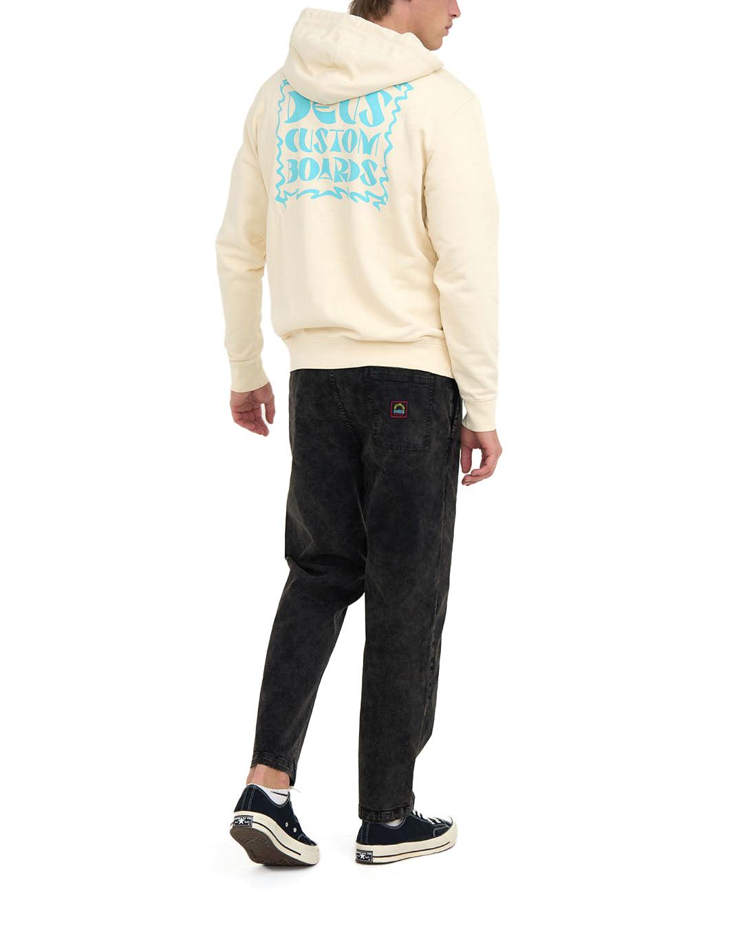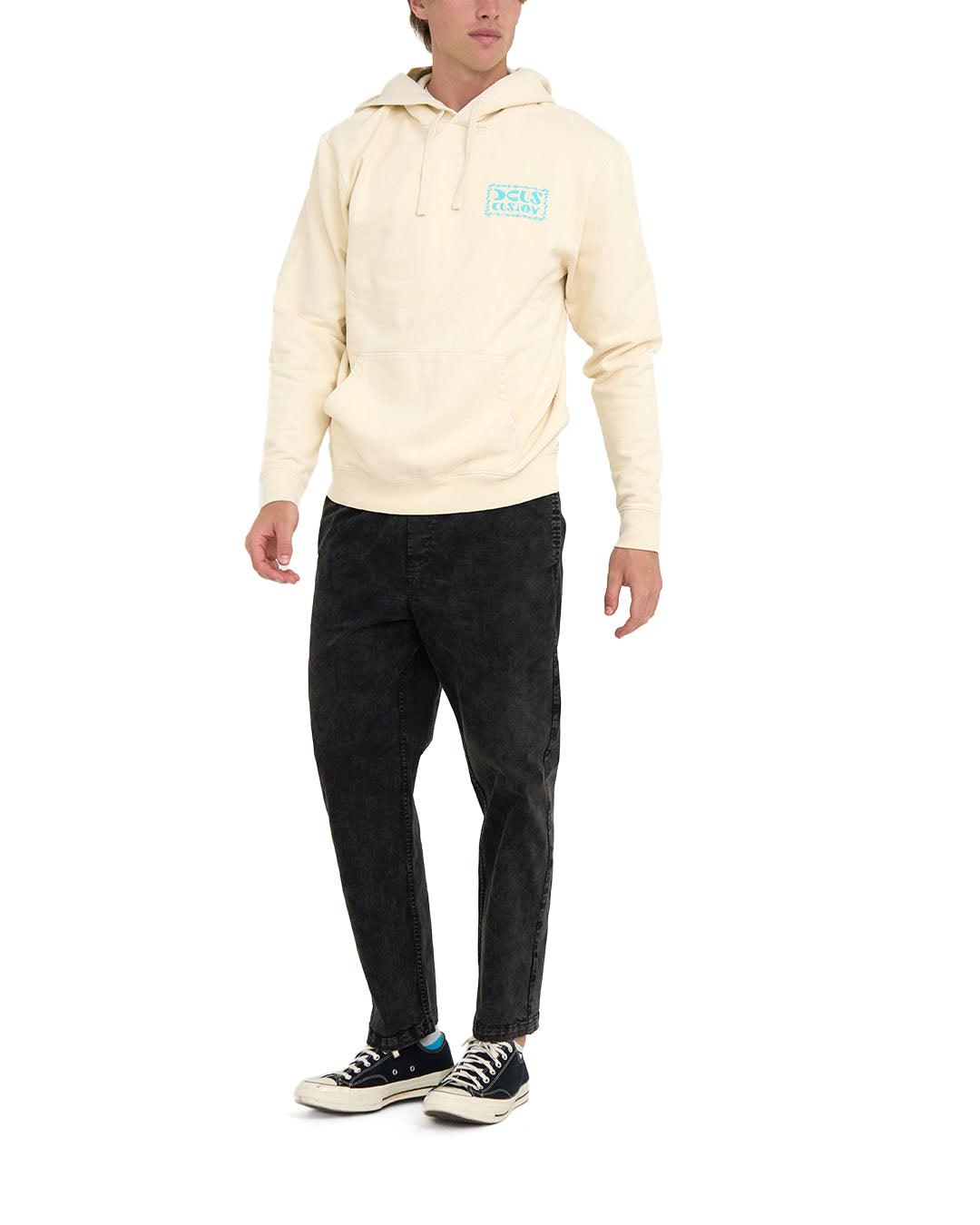 The Sunblock Acid Hoodie is our tribute to those glorious brands of surfing days passed. The late 90s was perhaps the most interesting time in surf commercialism, and the Sunblock Acid hood’s front and back prints channel the halcyon days of our beloved industry. It’s a loose fit hoodie available in two striking colours - Dirty White and Lemon Chrome - constructed from 450gm of recycled Cotton/regular Cotton Brushback Fleece that’s been garment dyed and acid washed.