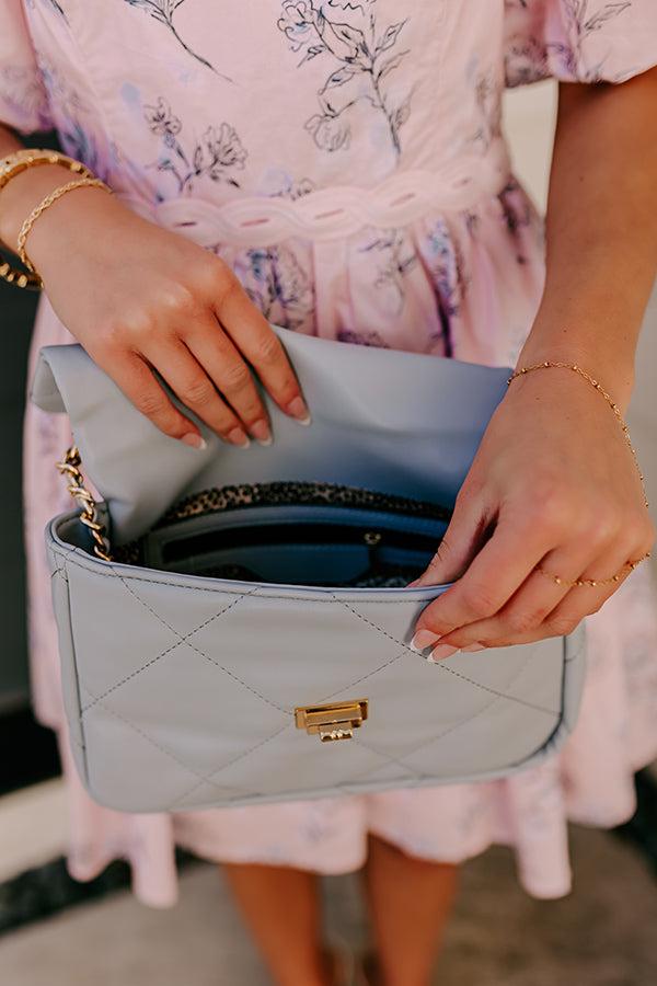 - A quilted purse that brings chic style to every moment! The perfect touch for polished looks that never go out of fashion. - Quilted faux leather material - Gold colored metal hardware - Flap and twist closure - An exterior pocket on the back - A chain link handle on top as well as a faux leather and chain link strap - A fully lined interior with two pockets