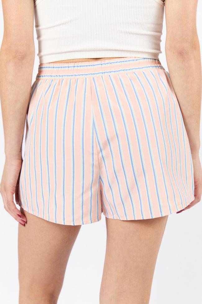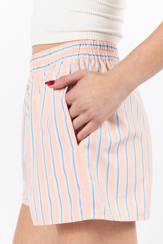 Details Coral Multi Striped Boxer Shorts Fabric only has stretch in elastic Elastic waistband, faux button up closure, functional pockets Unlined Size small inseam: 1.75" Material and Care 70% polyester 30% cotton Machine wash cold, no drum drying Patterns may vary Materials may have natural variations Colors may vary from different viewing devices.