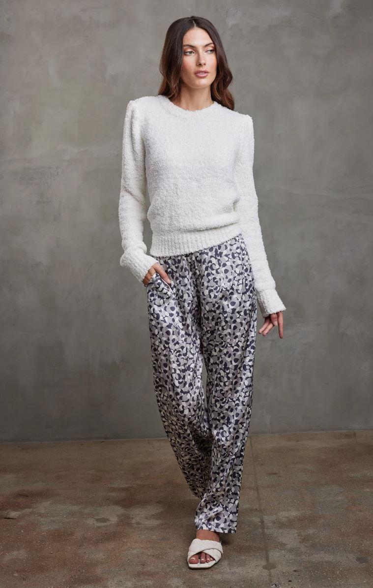 Made from a luxuriously soft teddy yarn, Elijah is perfect for when you want to lounge in the house or layer up for your day in the most comfortable fashion possible. This crew neck sweater features a slightly puffed sleeve and an elongated rib cuff.