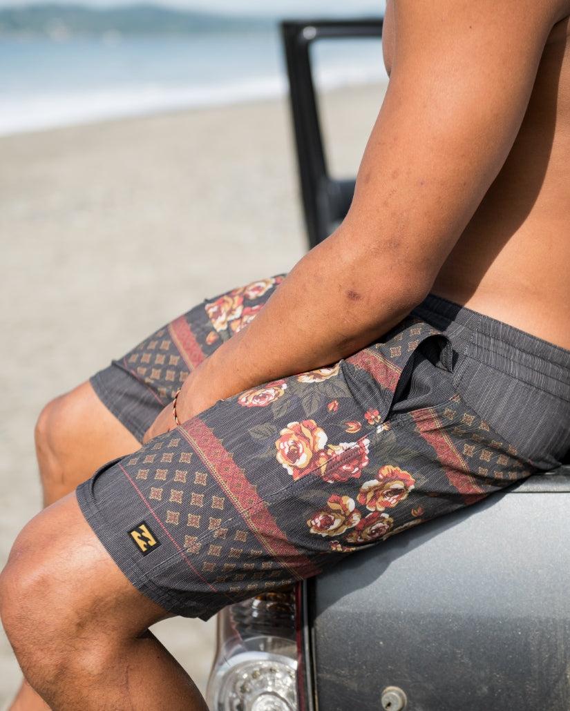 Lounge in laid-back style with these poly-cotton Billabong board shorts. The pro-stretch fabric and 19" length keep you comfy through beach days and backyard hangouts. Multiple pockets and a fixed waistband provide functional perks, while the minimal woven branding elevates your casual summer look. Featured here in the Phantom colorway. Features Poly Cotton Stretch / Pro Stretch 19" Lo Tide Fit Back patch pocket Pockets at side seam Fixed Waist Woven label branding