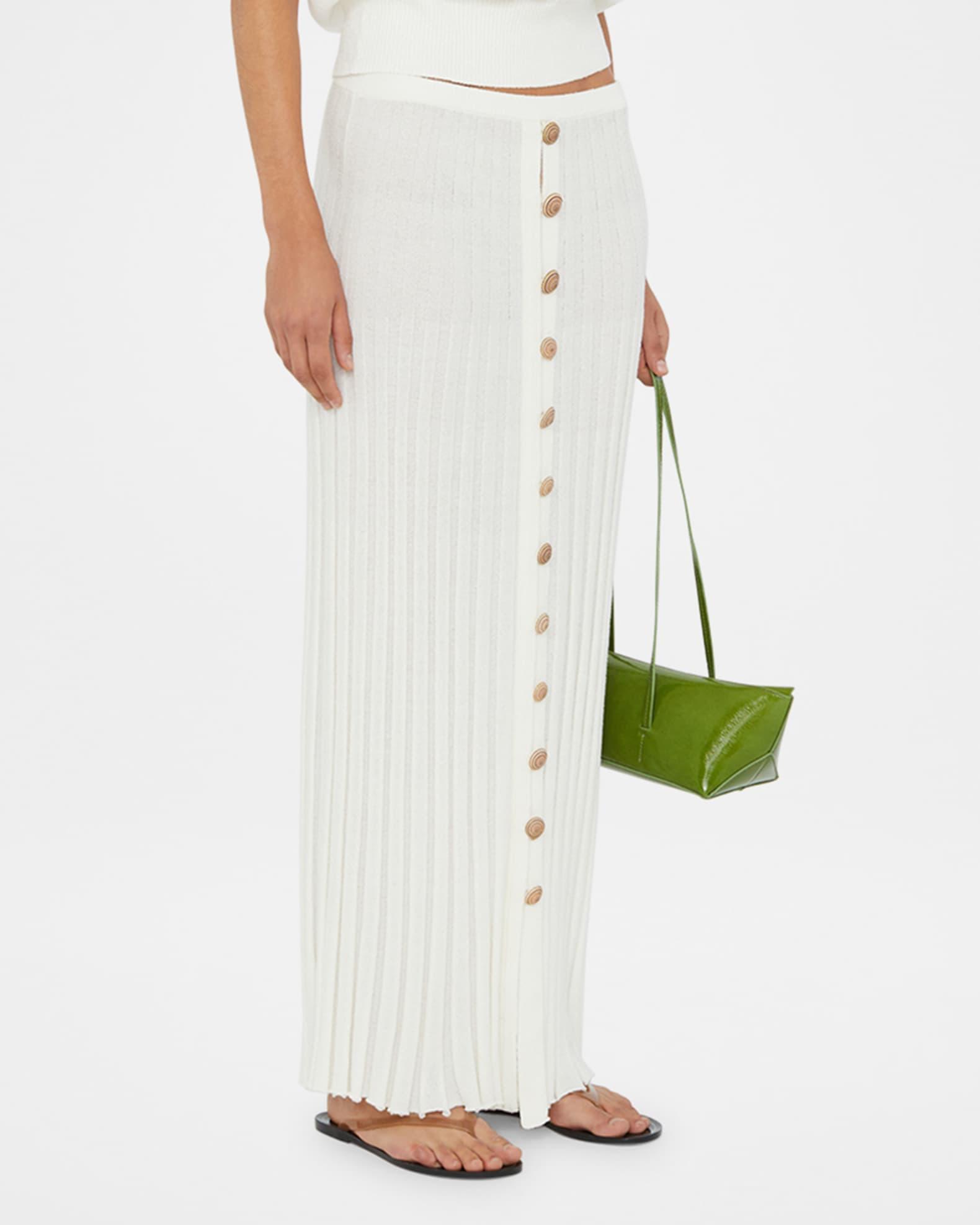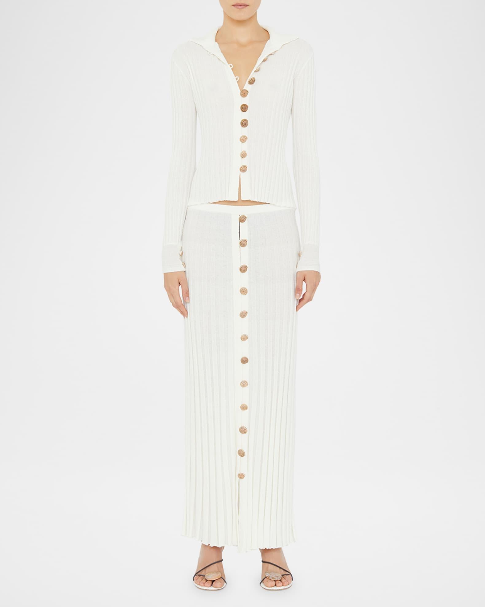 Sundial Shell Button-front Sunray Knit Maxi Skirt