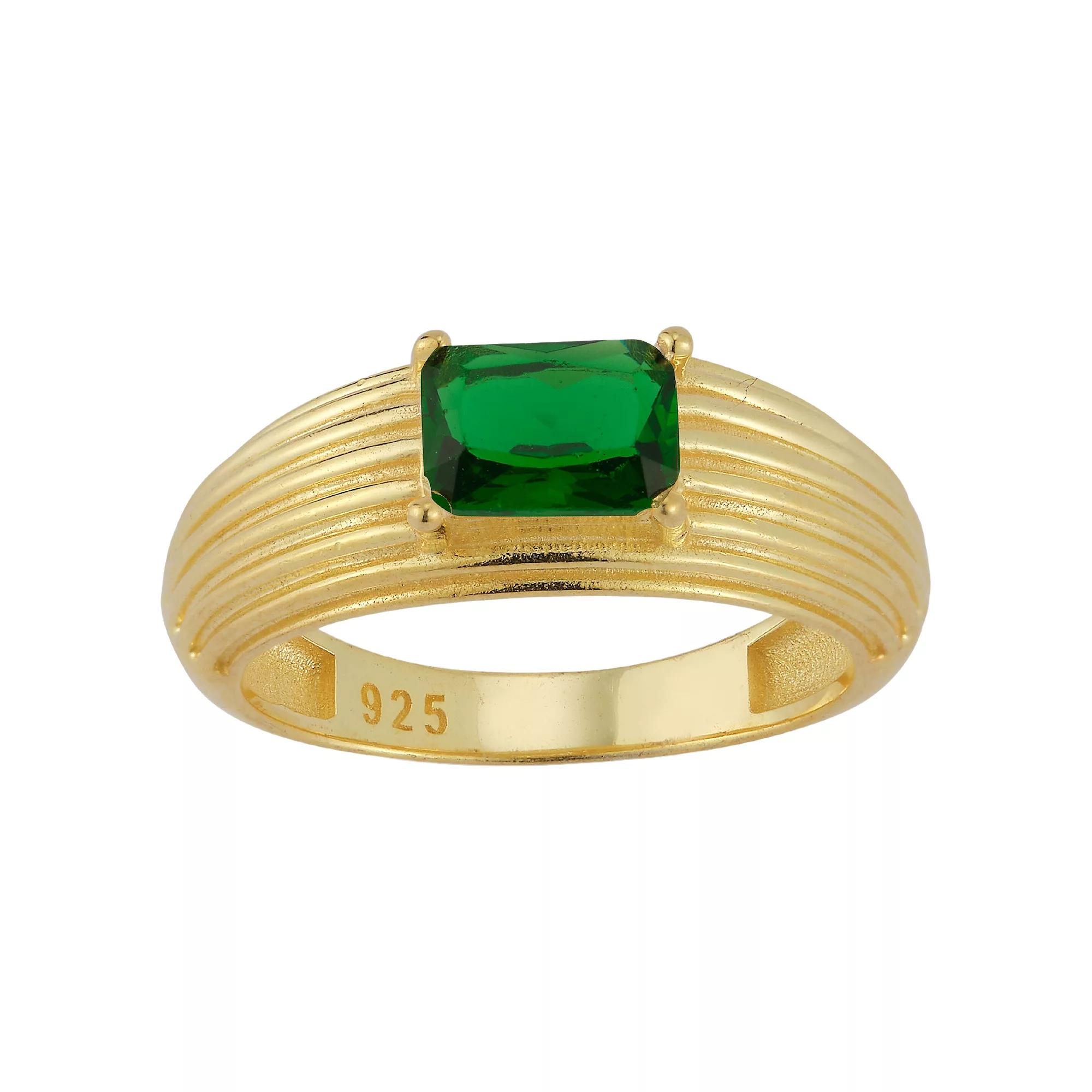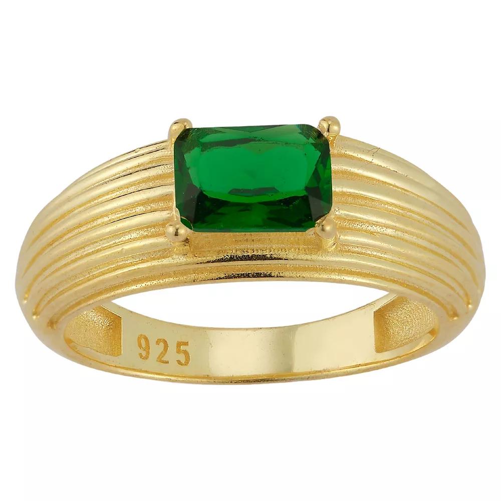 Add this cubic zirconia ring from Sunkissed Sterling to your vintage collection. Click on this JEWELRY & WATCHES GUIDE to learn about fit, styles, materials and more! Add this cubic zirconia ring from Sunkissed Sterling to your vintage collection. Click on this JEWELRY & WATCHES GUIDE to learn about fit, styles, materials and more! FEATURES Shank style: stackable Metal: sterling silver Plating: 14k gold Finish: polished Packaging: pouchSTONE DETAILS Stone type: cubic zirconia Center stone size: 7mm x 5mm Shape: emerald cut Setting: prong Gemstones may have been treated to enhance their appearance. Special care may be required. Please visit our Gemstone Treatment & Special Care Guide for more information. Size: 8. Gender: female. Age Group: adult. Material: Gold Over Sterling.