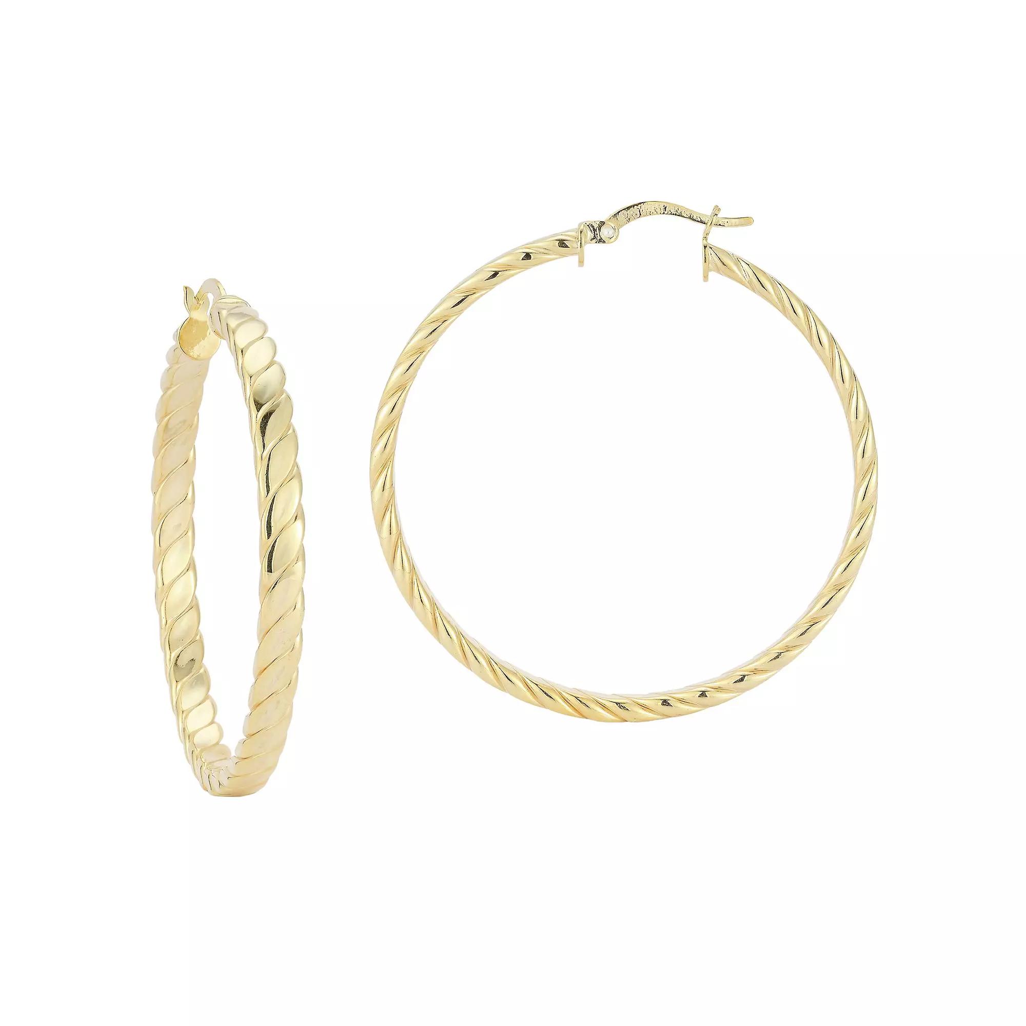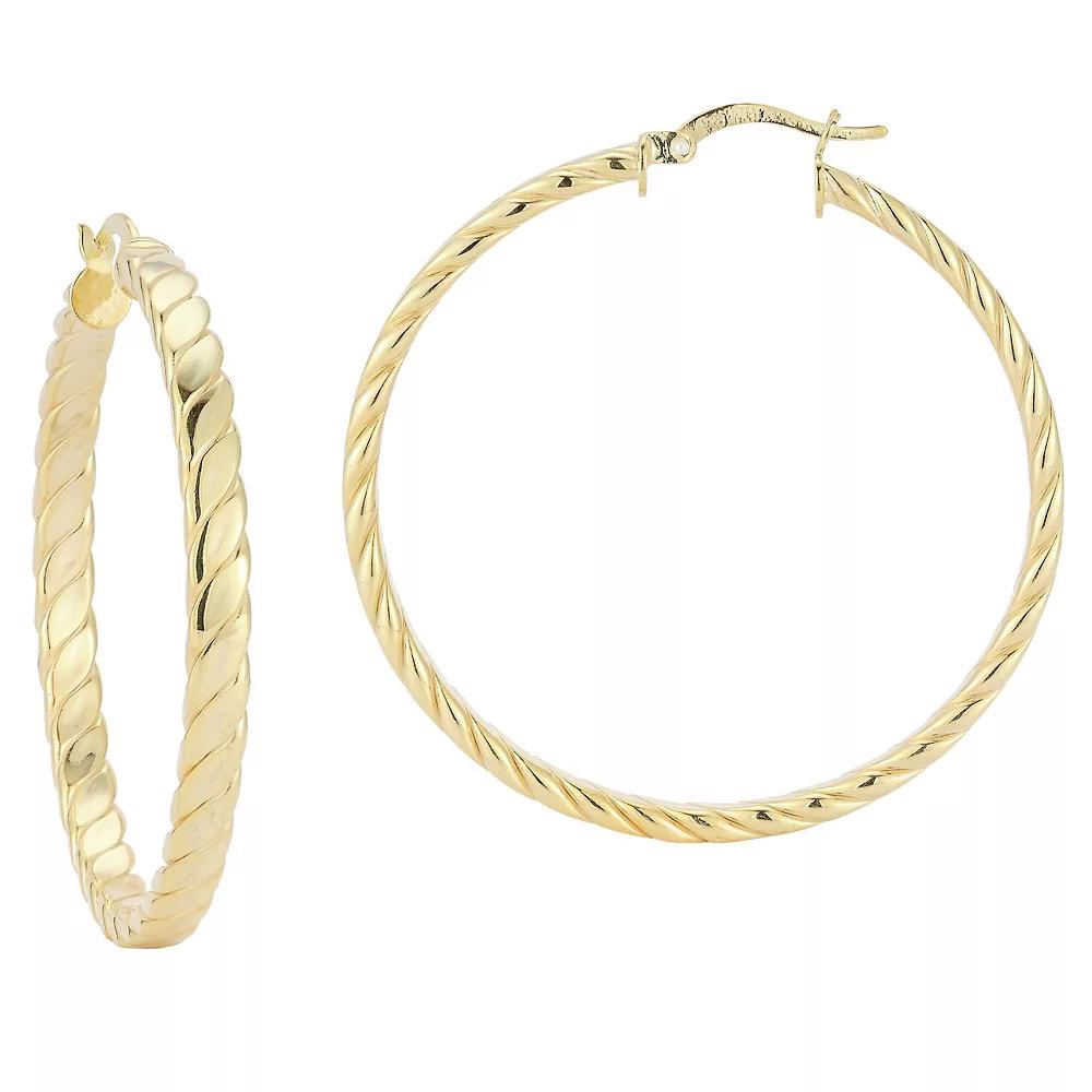 Accessorize in style with these Sunkissed Sterling 14k Gold Over Silver Large Flat Twist Hoop Earrings. Accessorize in style with these Sunkissed Sterling 14k Gold Over Silver Large Flat Twist Hoop Earrings. Metal: sterling silver Finish: polished Packaging: pouch Plating: rhodium, 14k gold 1.85 in drop Size: One Size. Gender: female. Age Group: adult.