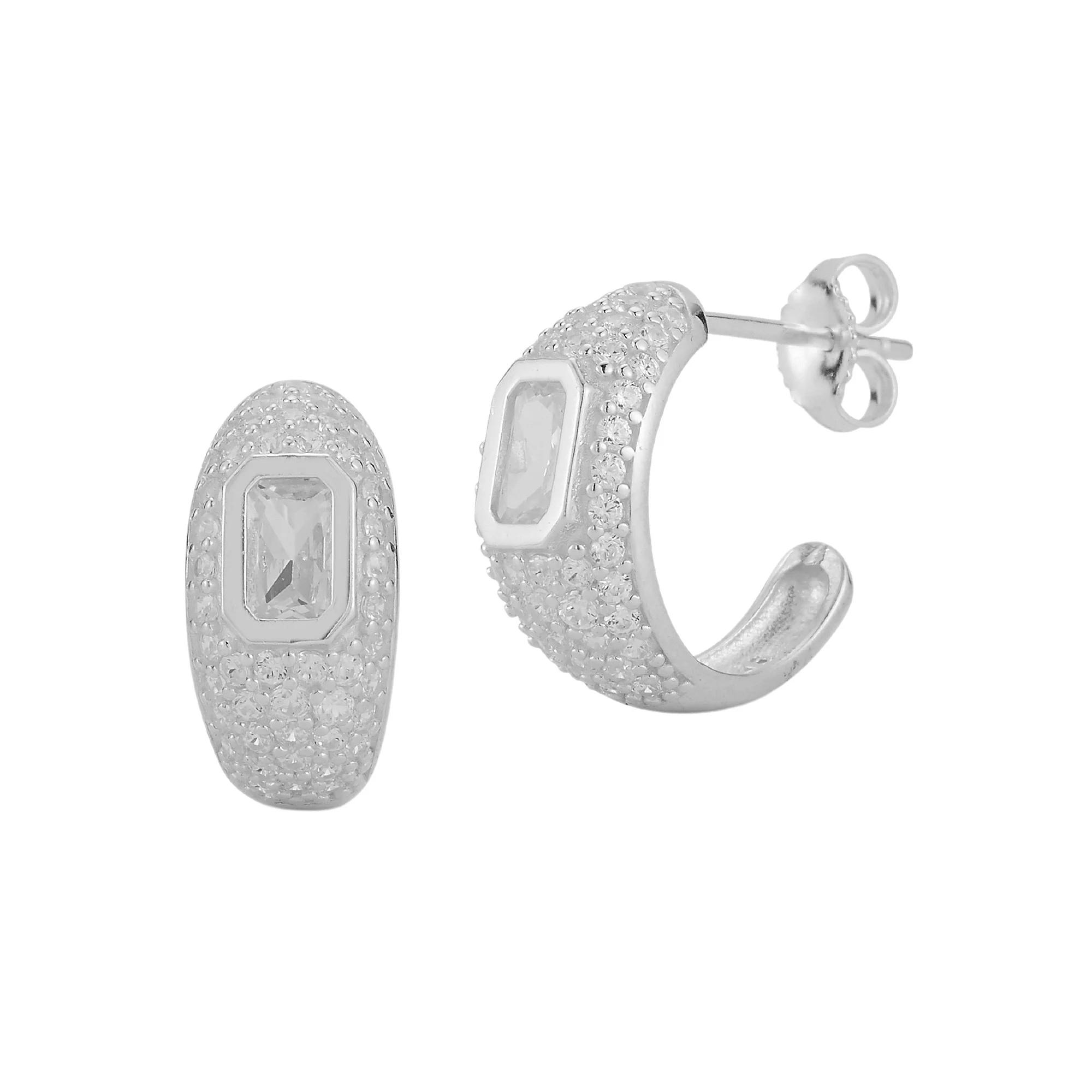 Sunkissed Sterling 14k Gold Over Silver Pave Hoop Earrings, Women's, Silver Tone