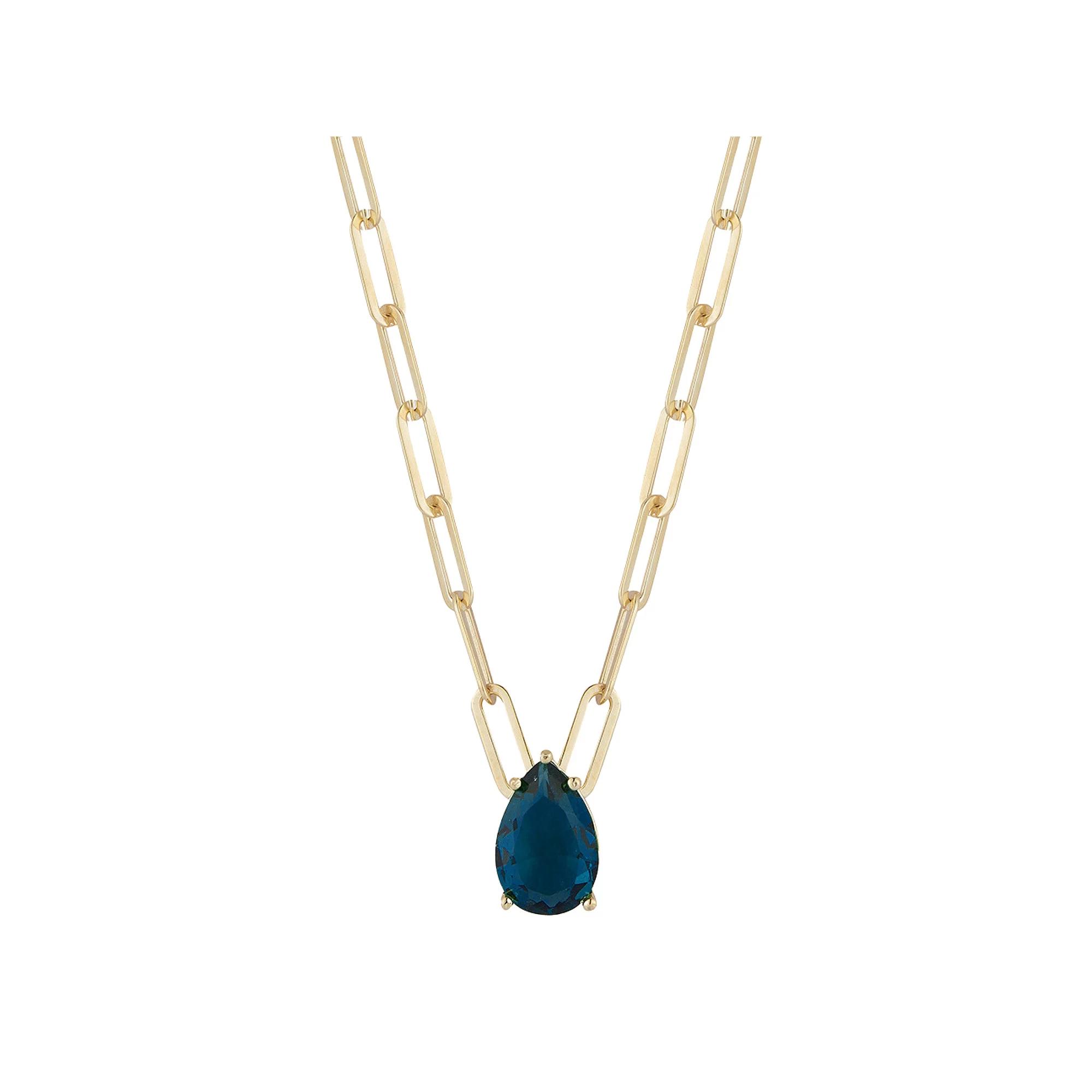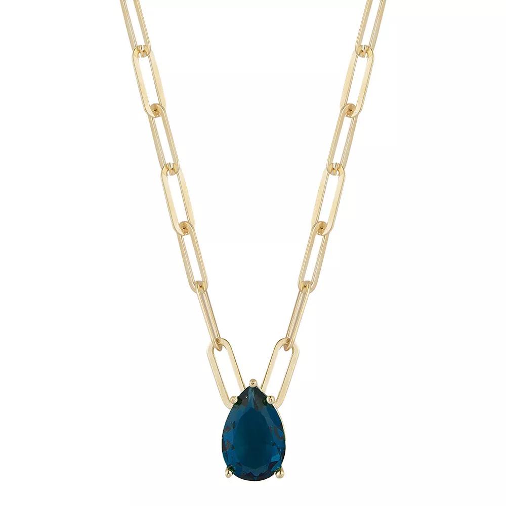 Sunkissed Sterling 14k Gold Over Silver Pear Cubic Zirconia Paper Clip Necklace, Women's, Size: 17", Gold Tone Blue