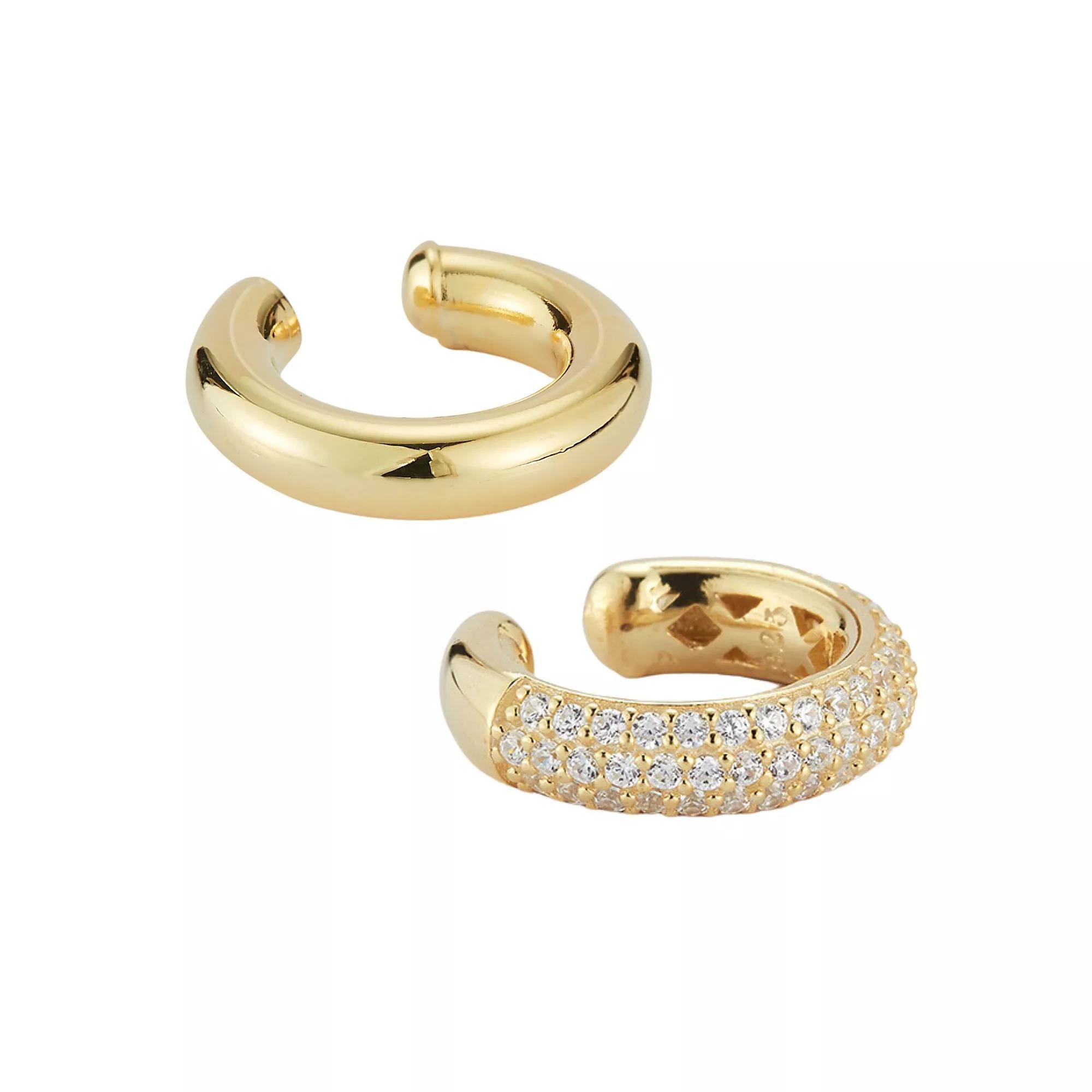 Elevate your look with the eye-catching beauty of this Sunkissed Sterling 14k Gold-Over-Silver Plain & Pave Ear Cuff Set. Click on this JEWELRY & WATCHES GUIDE to learn about fit, styles, materials and more! FEATURES 3.5mm thick Backings: open cuff Nickel free Metal: sterling silver Plating: rhodium & 14k gold Finish: polished Packaging: pouchSTONE DETAILS Stone type: cubic zirconia Center stone size: 1mm x 1mm (each) Shape: round Setting: prong Color: Yellow. Gender: female. Age Group: adult.