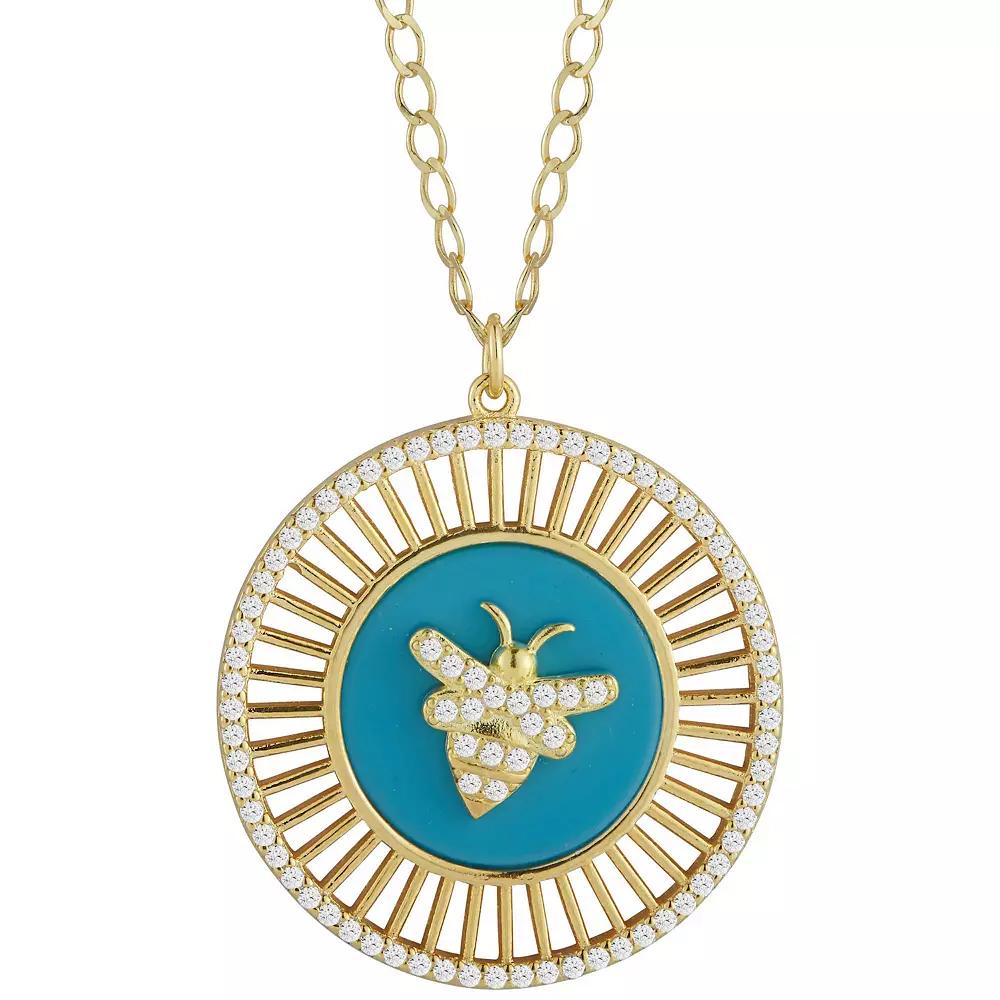 A buzzworthy look is effortless when you pair this Sunkissed Sterling bee pendant with your wardrobe. A buzzworthy look is effortless when you pair this Sunkissed Sterling bee pendant with your wardrobe. Pendant size: 1"L x 1"W Chain length: 16 in. + 2-in. extender Chain type: curb Metal: sterling silver Plating: rhodium, 14k gold Finish: polished Packaging: pouch Gemstones may have been treated to enhance their appearance. Special care may be required. Please visit our Gemstone Treatment & Special Care Guide for more information. Size: 18". Color: Multicolor. Gender: female. Age Group: adult. Material: Cubic Zirconia.