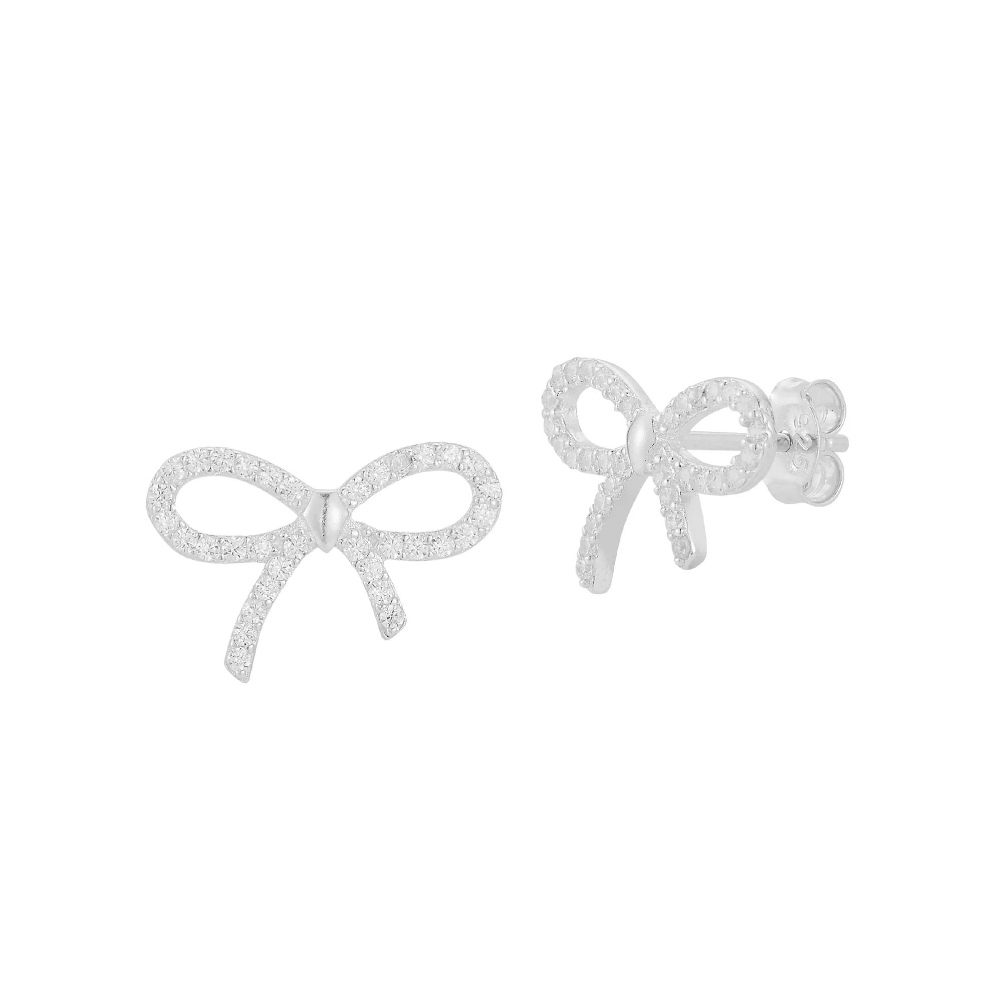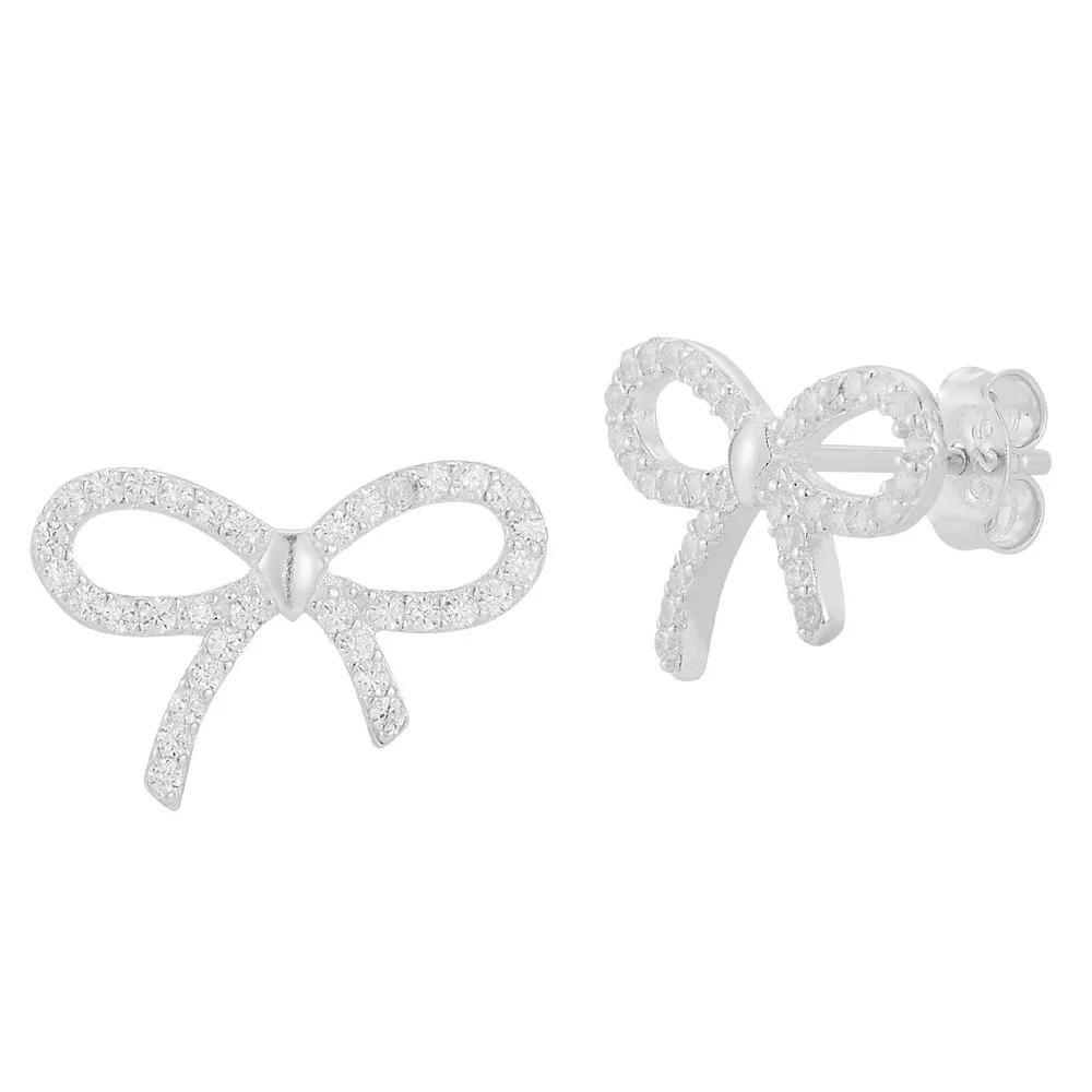 Sunkissed Sterling Cubic Zirconia Bow Stud Earrings, Women's, Silver Tone