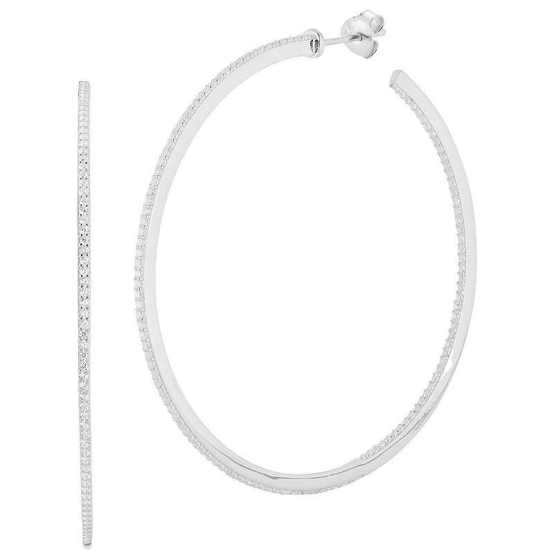 Decorated with shimmering cubic zirconia gemstones, these Sunkissed Sterling inside-out hoop earrings are a bold and fashionable pair. Decorated with shimmering cubic zirconia gemstones, these Sunkissed Sterling inside-out hoop earrings are a bold and fashionable pair. Metal: sterling silver Backings: post Packaging: pouch Plating: rhodium, 14k gold Finish: polished Length: 2.15 in.STONE DETAILS Stone type: cubic zirconia Shape: round Setting: prong Gemstones may have been treated to enhance their appearance. Special care may be required. Please visit our Gemstone Treatment & Special Care Guide for more information. Size: One Size. Gender: female. Age Group: adult.