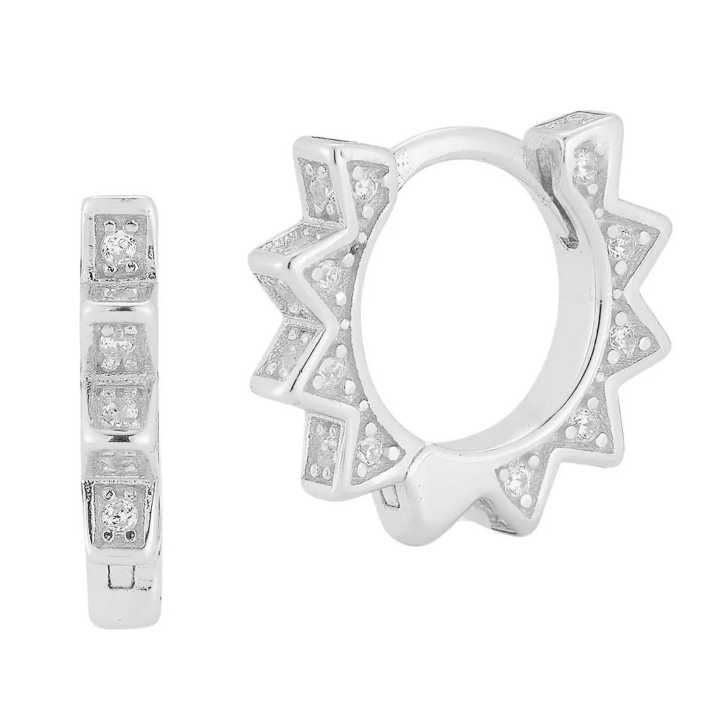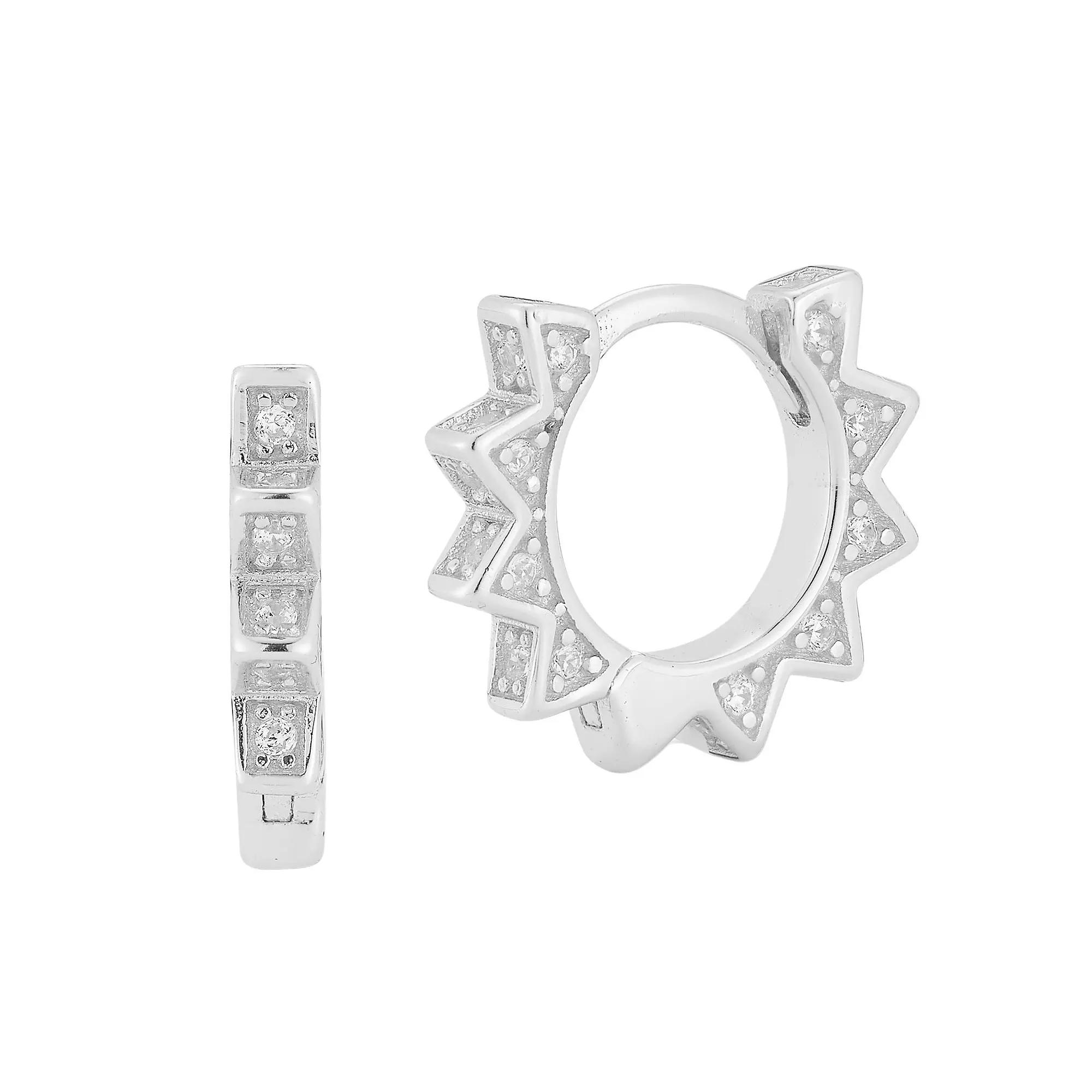 Sunkissed Sterling Cubic Zirconia Spike Huggie Hoop Earrings, Women's, Silver Tone