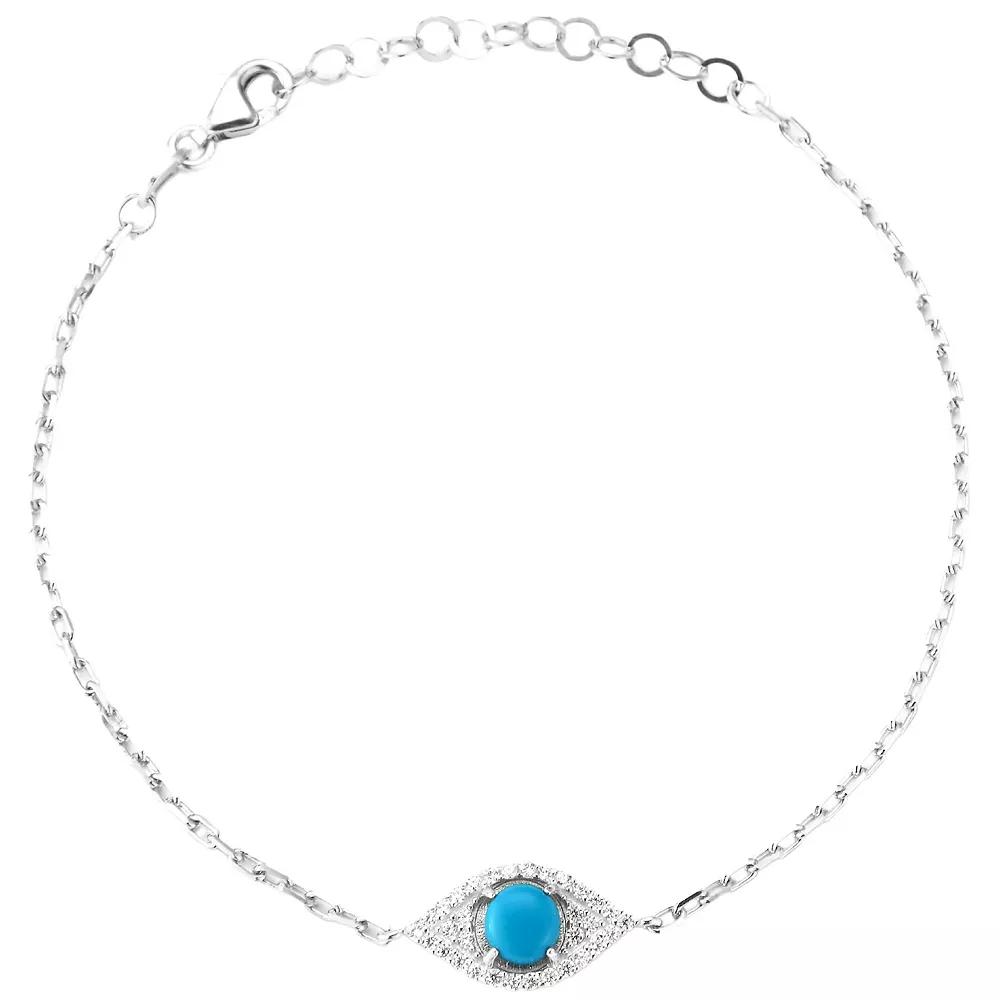 Sunkissed Sterling Cubic Zirconia & Synthetic Turquoise Dainty Eye Bracelet, Women's, Size: 8", Silver Tone
