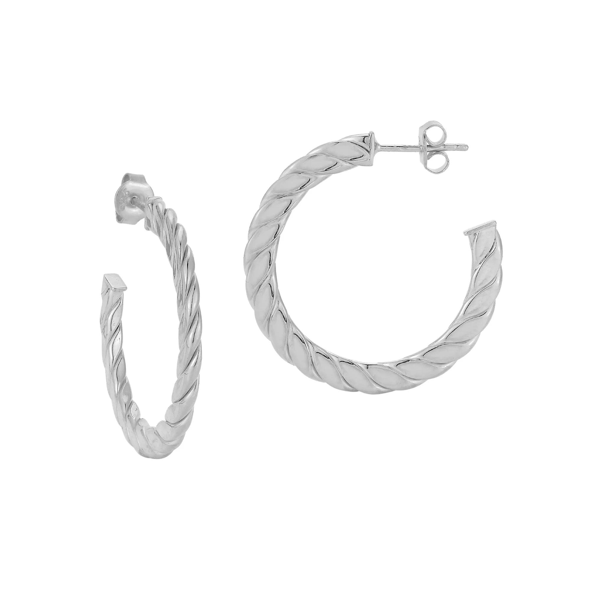 These Sunkissed Sterling hoops add a stylish twist to your favorite outfits. These Sunkissed Sterling hoops add a stylish twist to your favorite outfits. Length: 1.2 in. Backings: post Metal: sterling silver Plating: rhodium, 14k gold Finish: polished Packaging: pouch Size: One Size. Gender: female. Age Group: adult.