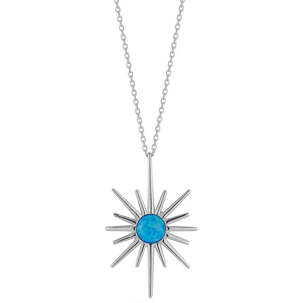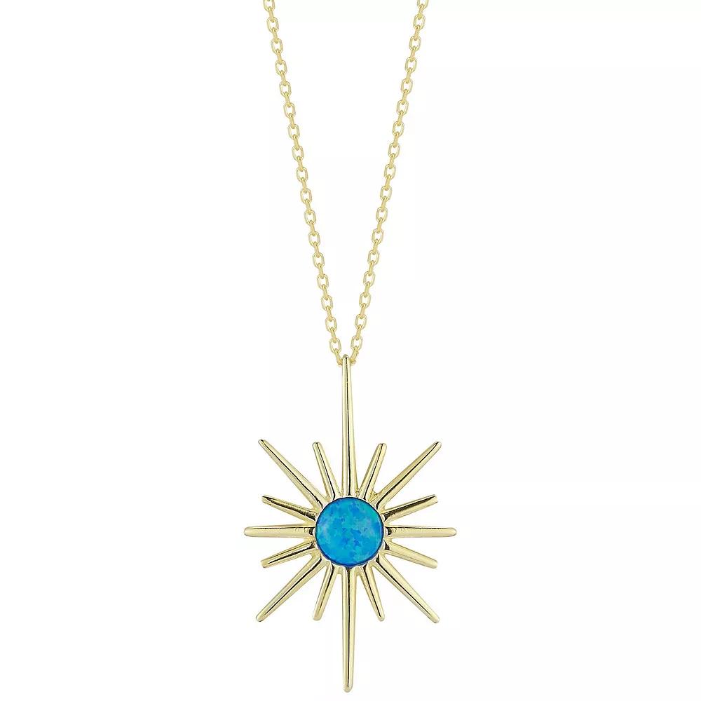 Feel radiantly beautiful with this simulated opal star pendant necklace. Feel radiantly beautiful with this simulated opal star pendant necklace. Metal: sterling silver Chain length: 16 in. + 2-in. extender Packaging: pouch Plating: rhodium, 14k gold Finish: polished Pendant size: 0.70"L x 1.2"W Chain type: roloSTONE DETAILS Stone type: simulated white opal, simulated blue opal Shape: round Setting: bezel Gemstones may have been treated to enhance their appearance. Special care may be required. Please visit our Gemstone Treatment & Special Care Guide for more information. Size: 16". Color: Multicolor. Gender: female. Age Group: adult.
