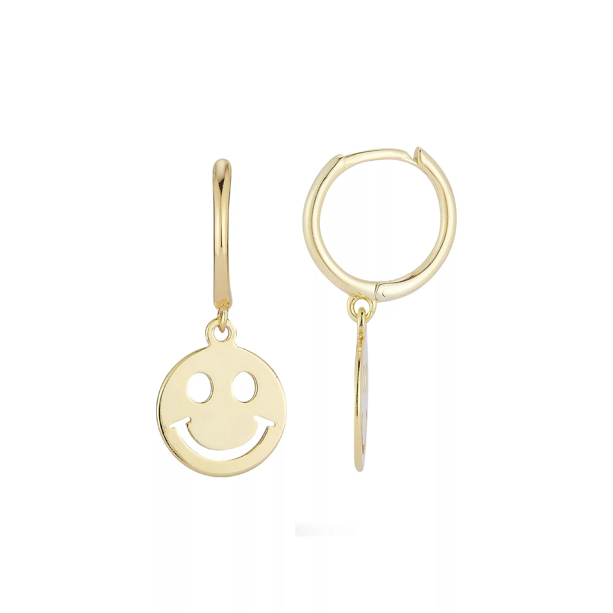Accessorize with style with these fun Sunkissed Sterling smiley face hoop drop earrings. Accessorize with style with these fun Sunkissed Sterling smiley face hoop drop earrings. Backings: hinge Metal: sterling silver Packaging: pouch Finish: polished Length: 0.9 in. Size: One Size. Color: Gold. Gender: female. Age Group: adult.