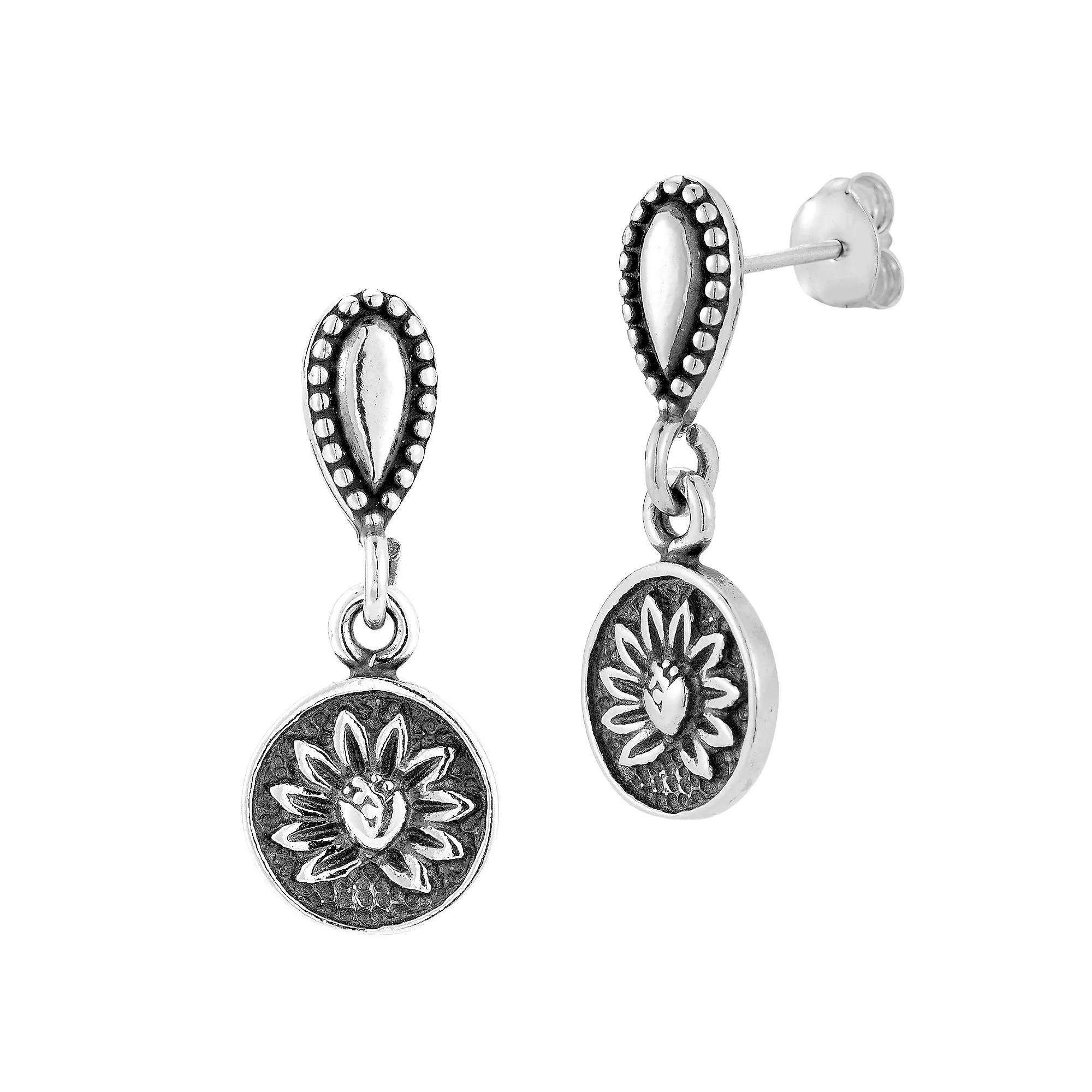 Sunkissed Sterling Sterling Silver Oxidized Flower Drop Earrings, Women's, Silver Tone