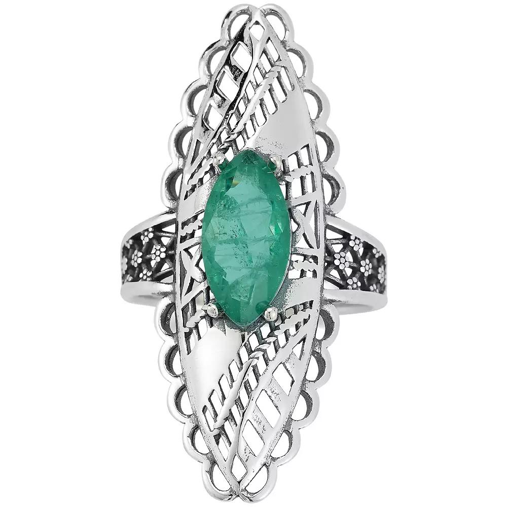 Sunkissed Sterling Sterling Silver Oxidized Lab-Created Emerald Triplet Ring, Womens Silver Tone