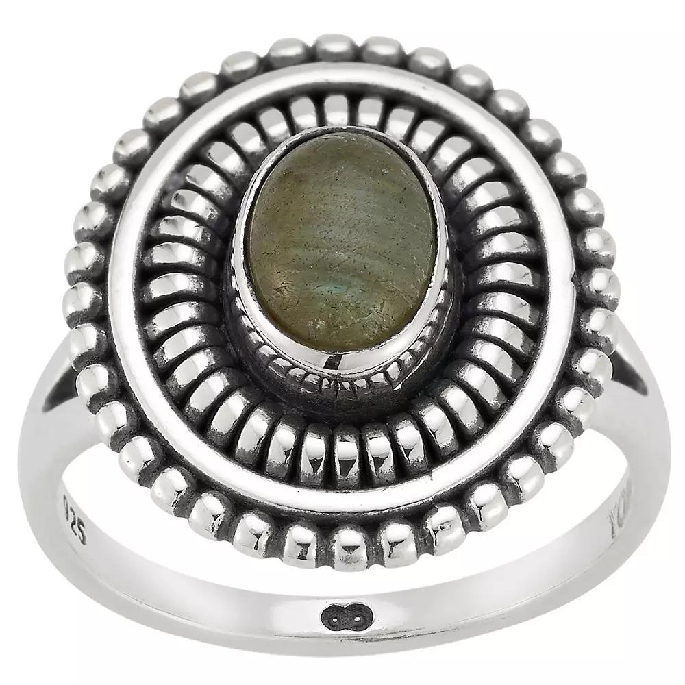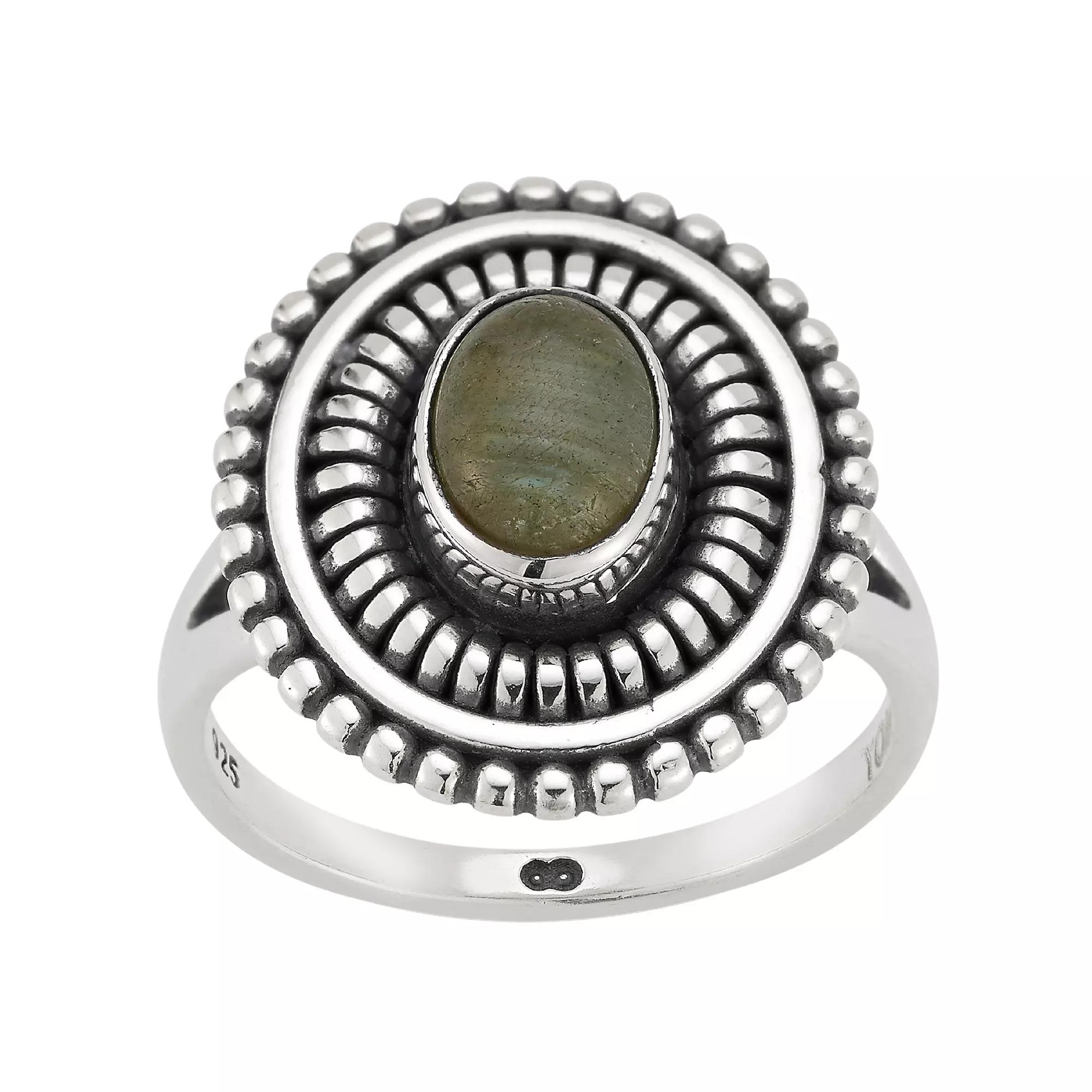Add a stylish touch to any ensemble with this Sunkissed Sterling sterling silver oxidized oval labradorite ring. Click on this JEWELRY & WATCHES GUIDE to learn about fit, styles, materials and more! Add a stylish touch to any ensemble with this Sunkissed Sterling sterling silver oxidized oval labradorite ring. Click on this JEWELRY & WATCHES GUIDE to learn about fit, styles, materials and more! FEATURES Width: 2 mm Shank style: stackable Nickel free Metal: sterling silver Plating: rhodium Finish: oxidized Packaging: pouchSTONE DETAILS Stone type: labradorite Stone size: 5.5 mm x 8 mm Shape: oval Setting: bezel Gemstones may have been treated to enhance their appearance. Special care may be required. Please visit our Gemstone Treatment & Special Care Guide for more information. Size: 7. Color: White. Gender: female. Age Group: adult.