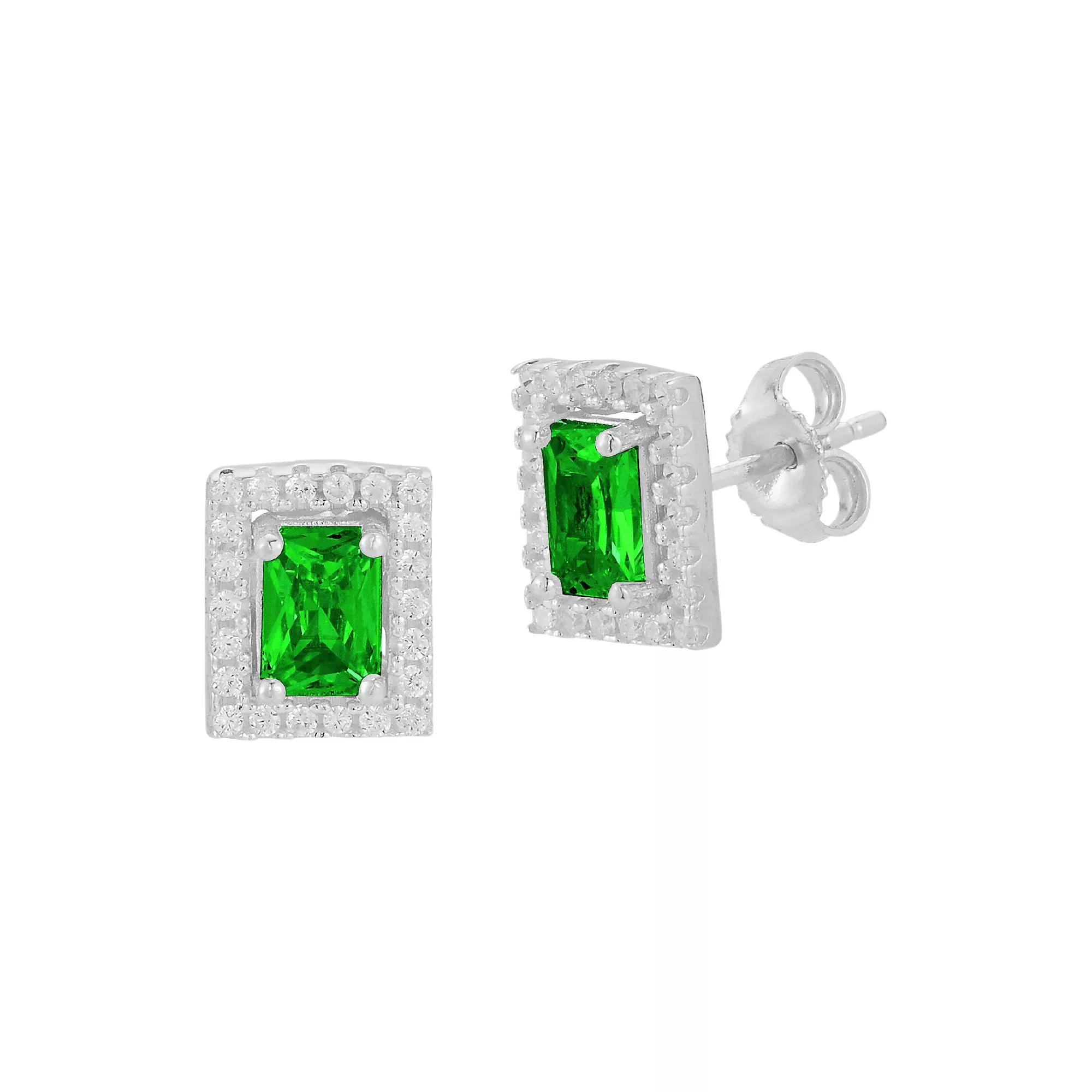 Sunkissed Sterling Cubic Zirconia Cluster Stud Earrings, Women's, Silver Tone Green