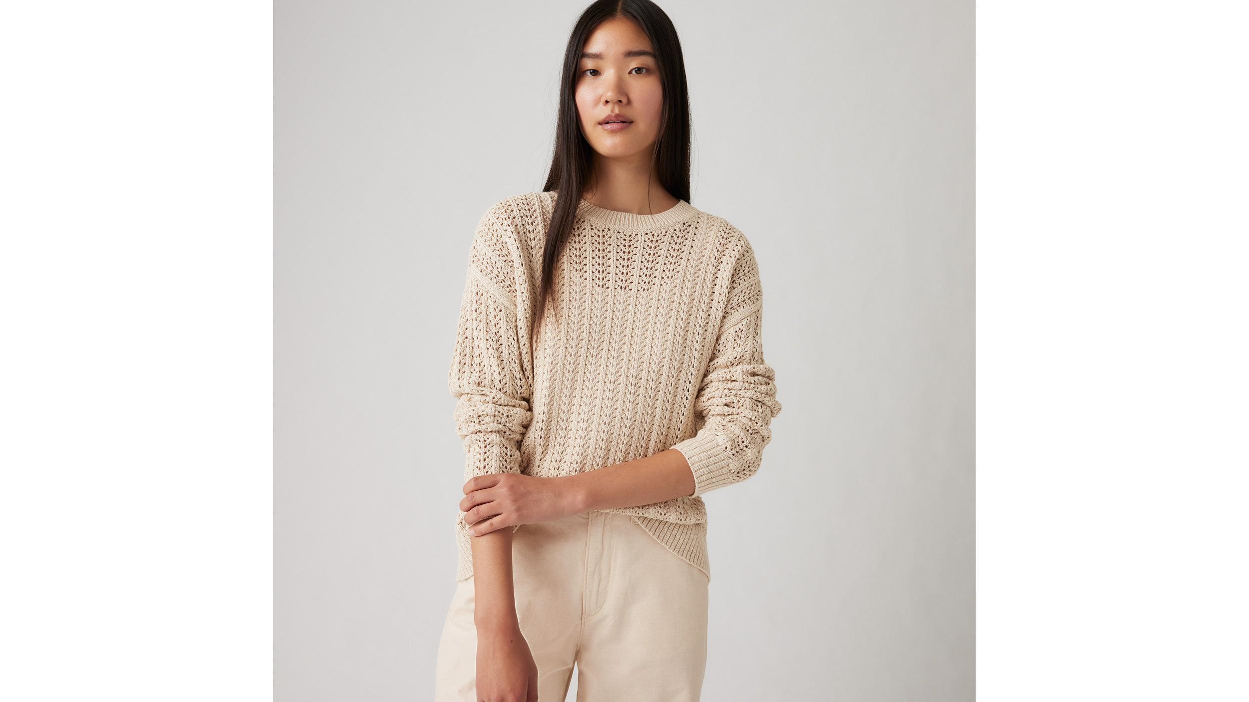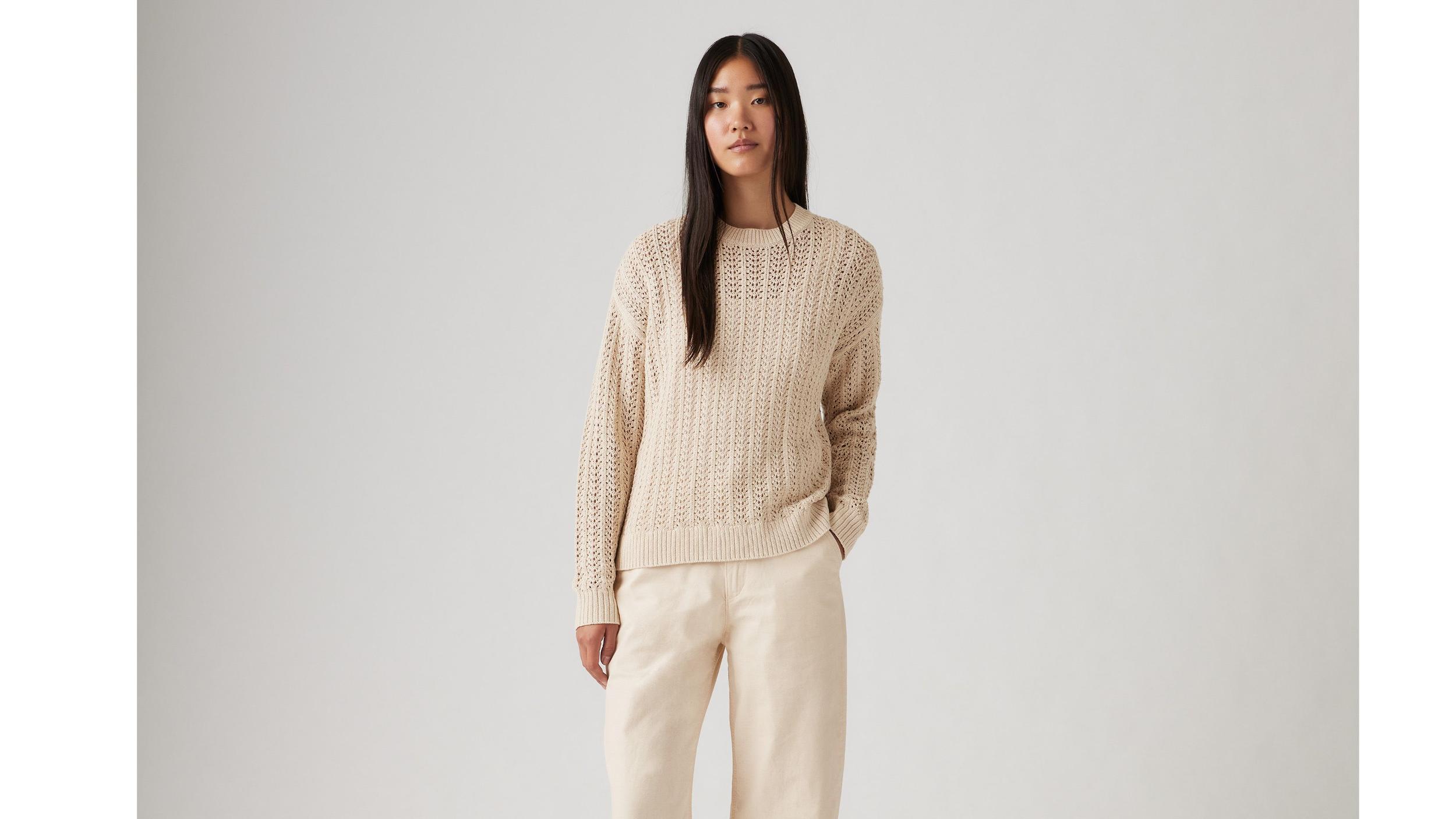 The easiest layer in your closet. This Sunrise Crochet Sweater features a ribbed crew neckline, a standard fit and a knit design.An easy layerCut with a standard fitFeatures a crochet designAiry. Breathable. Light. This garment was made with a blend of linen and cotton to keep you looking good and feeling comfortable.