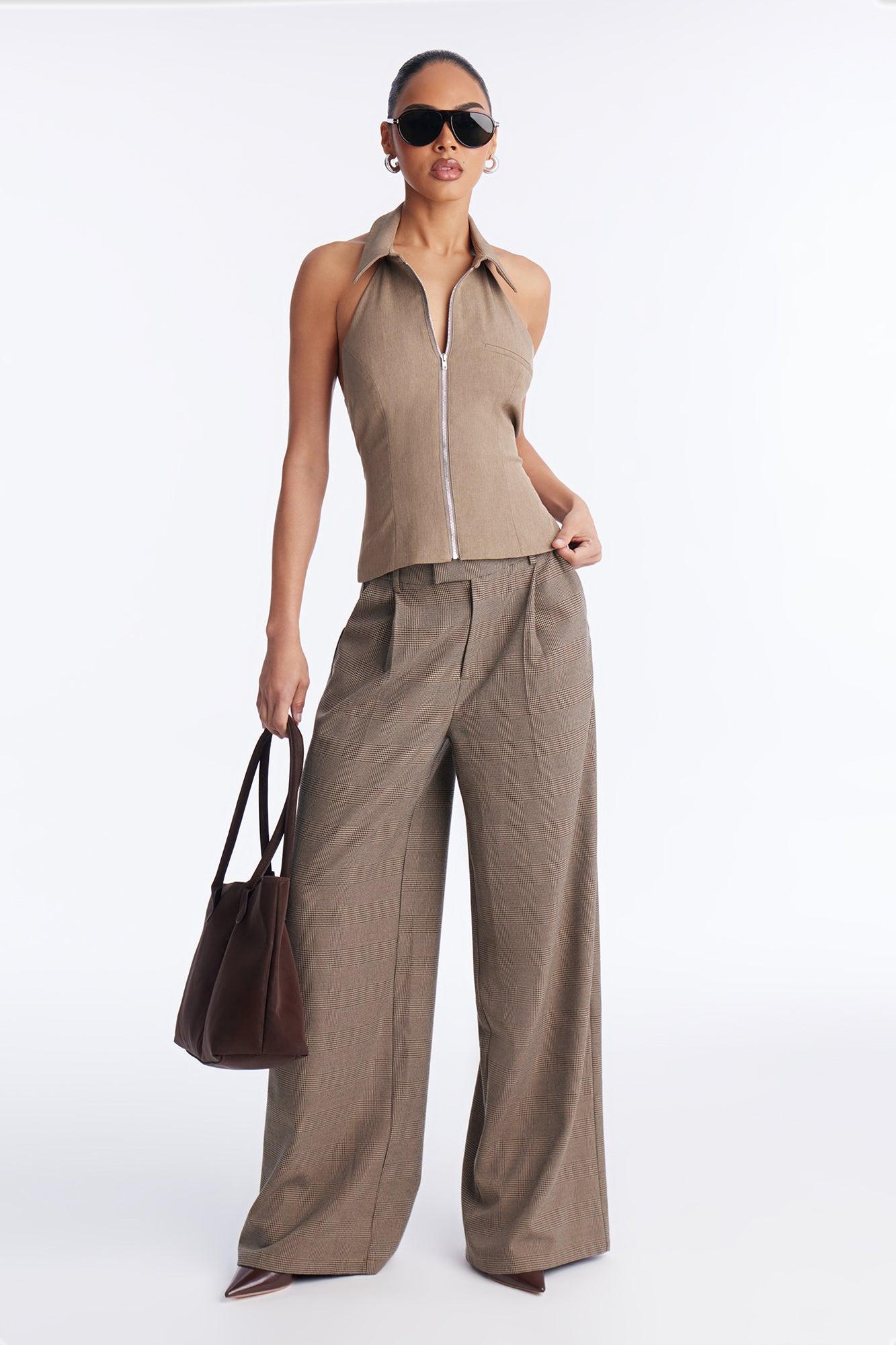 Sunrise Front Zip Halter Top - Taupe Female